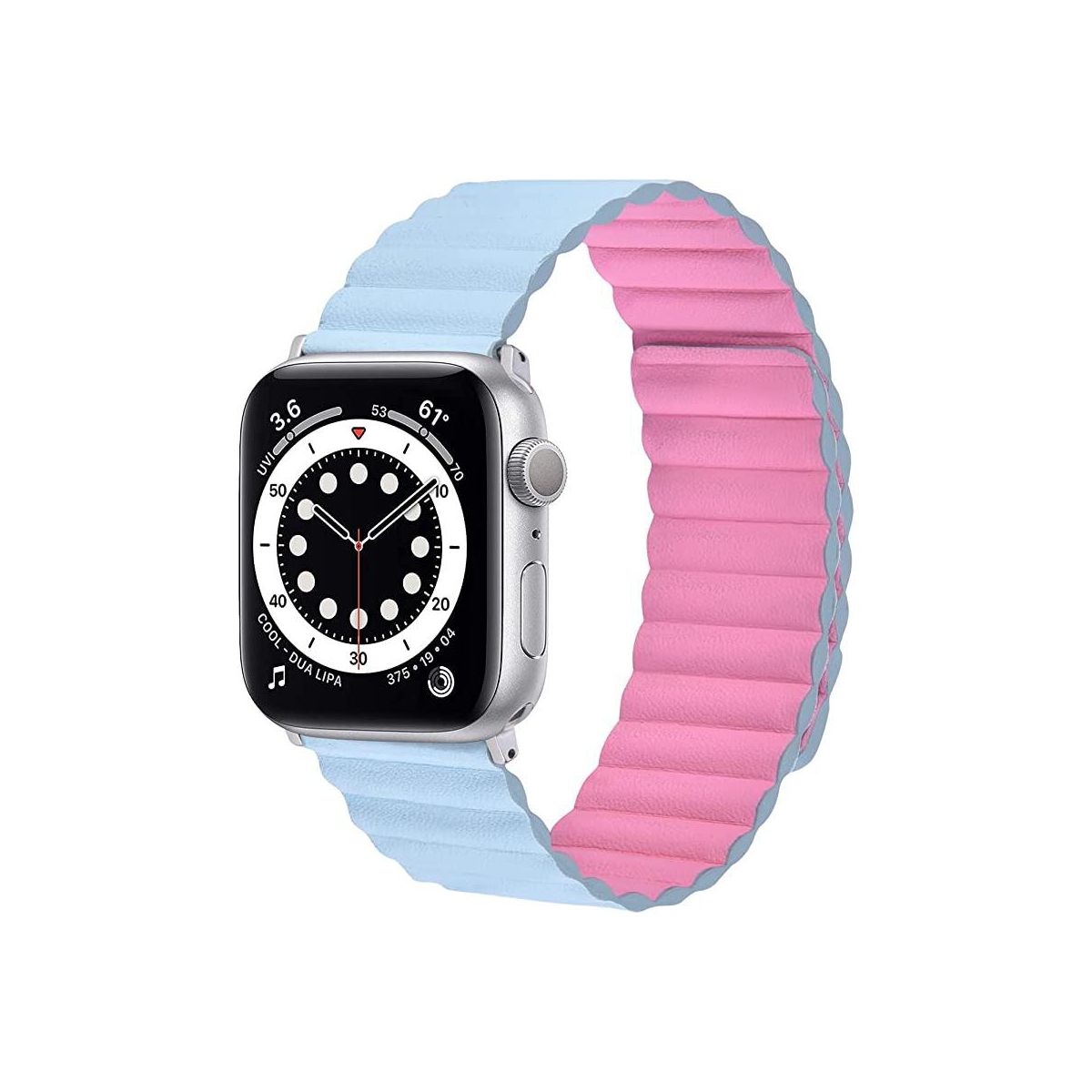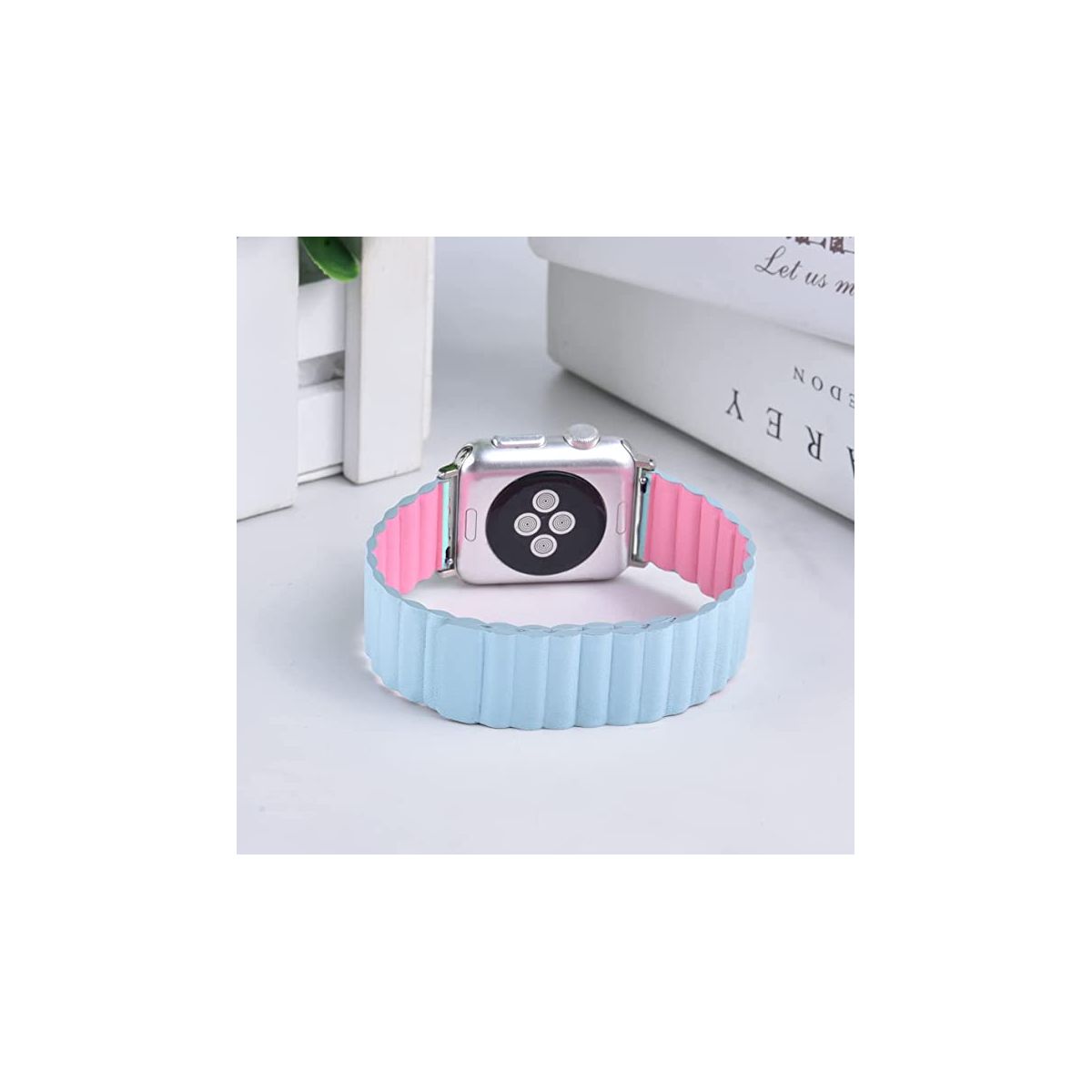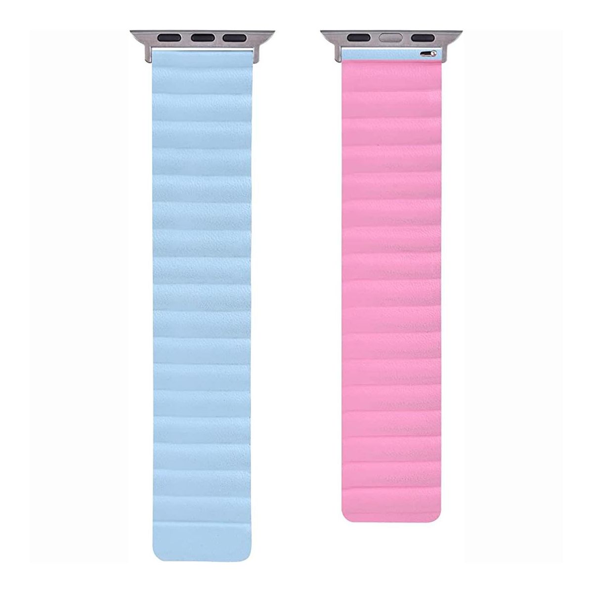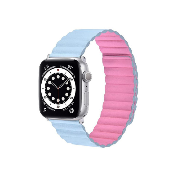 Worryfree Gadgets Reversible Leather Magnetic Band for Apple Watch - 38/40/41mm - Pink & Light Blue