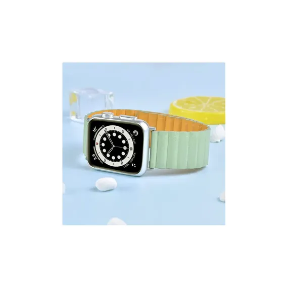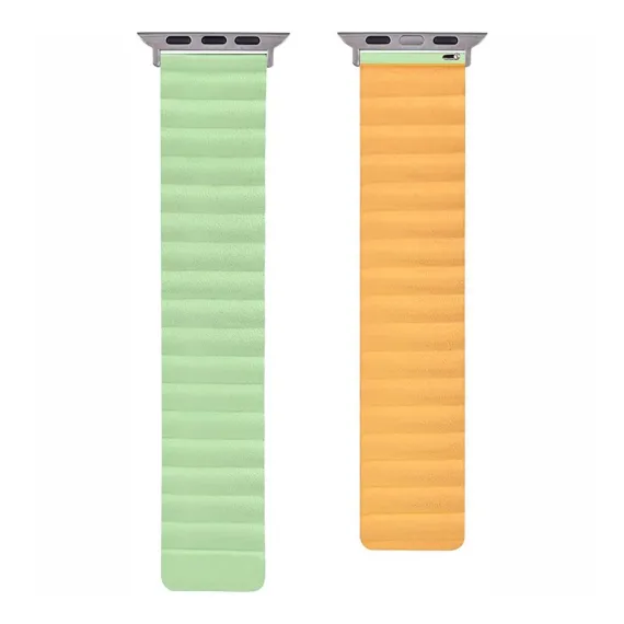 Reversible magnetic Leather band for Apple Watch Series 8 7 6 5 4 3 2 1 and SE. Magnetic strap is made Genuine Leather, which will help to hold your iWatch secure with clasp. The replacement strap made of high quality leather which is lightweight, wear-resistant and scratch-resistant, soft and comfortable. Soft leather material provides comfortable and cool feeling for your wrist. Special design for Apple Watch: New stylish design without buckle or hook. Two part of powerful magnetic iWatch straps hold together tightly which allows wearing your Apple Watch easily and quickly. The high quality genuine leather materials makes it anti-scratching and not easily damaged.