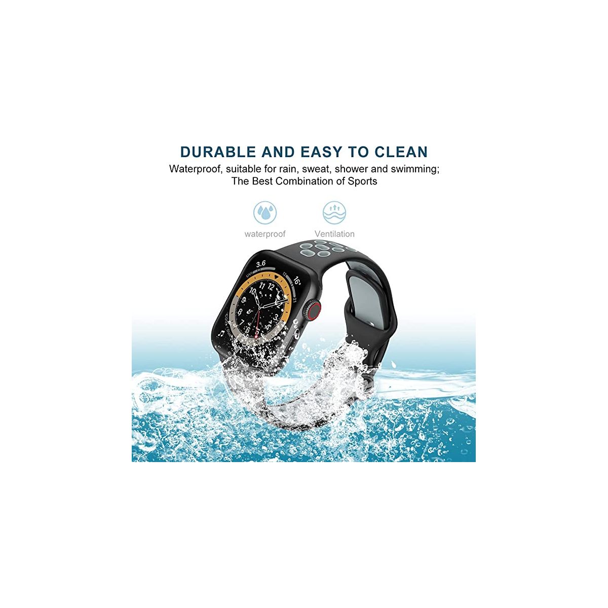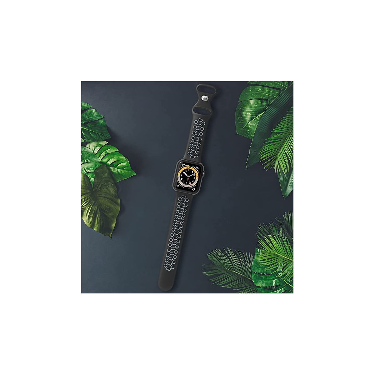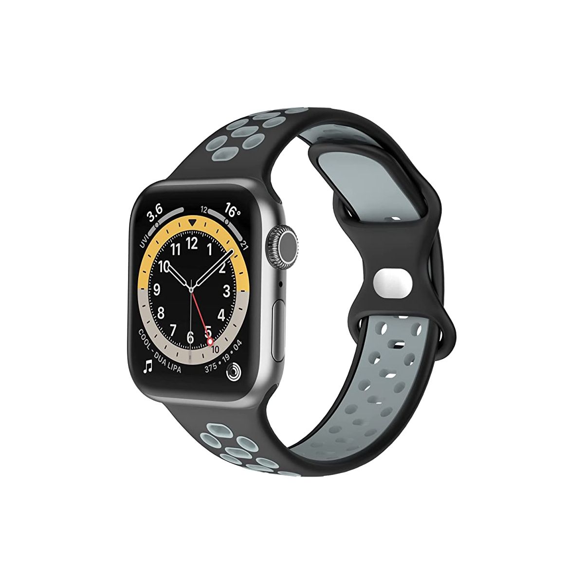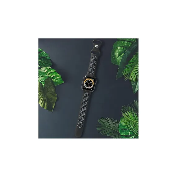 Worryfree Gadgets Dual Color Silicone Band For Apple Watch 42/44/45mm- Black/Gray Soft Silicone material Dual Color breathable sports band. Apple Watch Size : 42mm 44mm 45mm Compatible Series: Series 8, Series 7, Series 6, Series 5, Series 4, Series 3, Series 2, Series 1 and Series SE