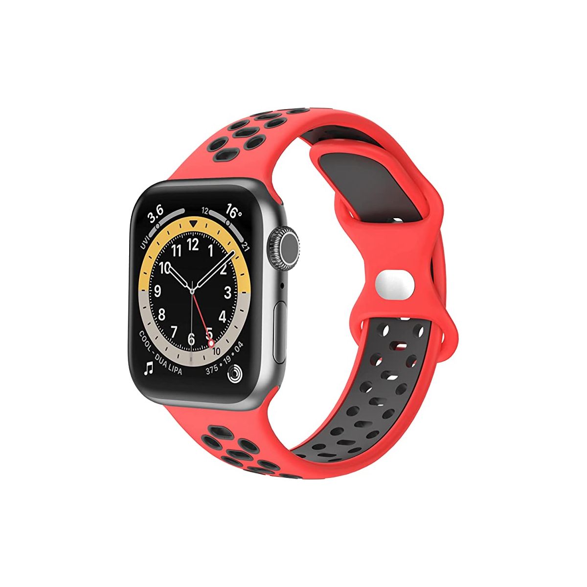 Worryfree Gadgets Dual Color Silicone Band For Apple Watch 42/44/45mm- Black/Gray Soft Silicone material Dual Color breathable sports band. Apple Watch Size : 42mm 44mm 45mm Compatible Series: Series 8, Series 7, Series 6, Series 5, Series 4, Series 3, Series 2, Series 1 and Series SE