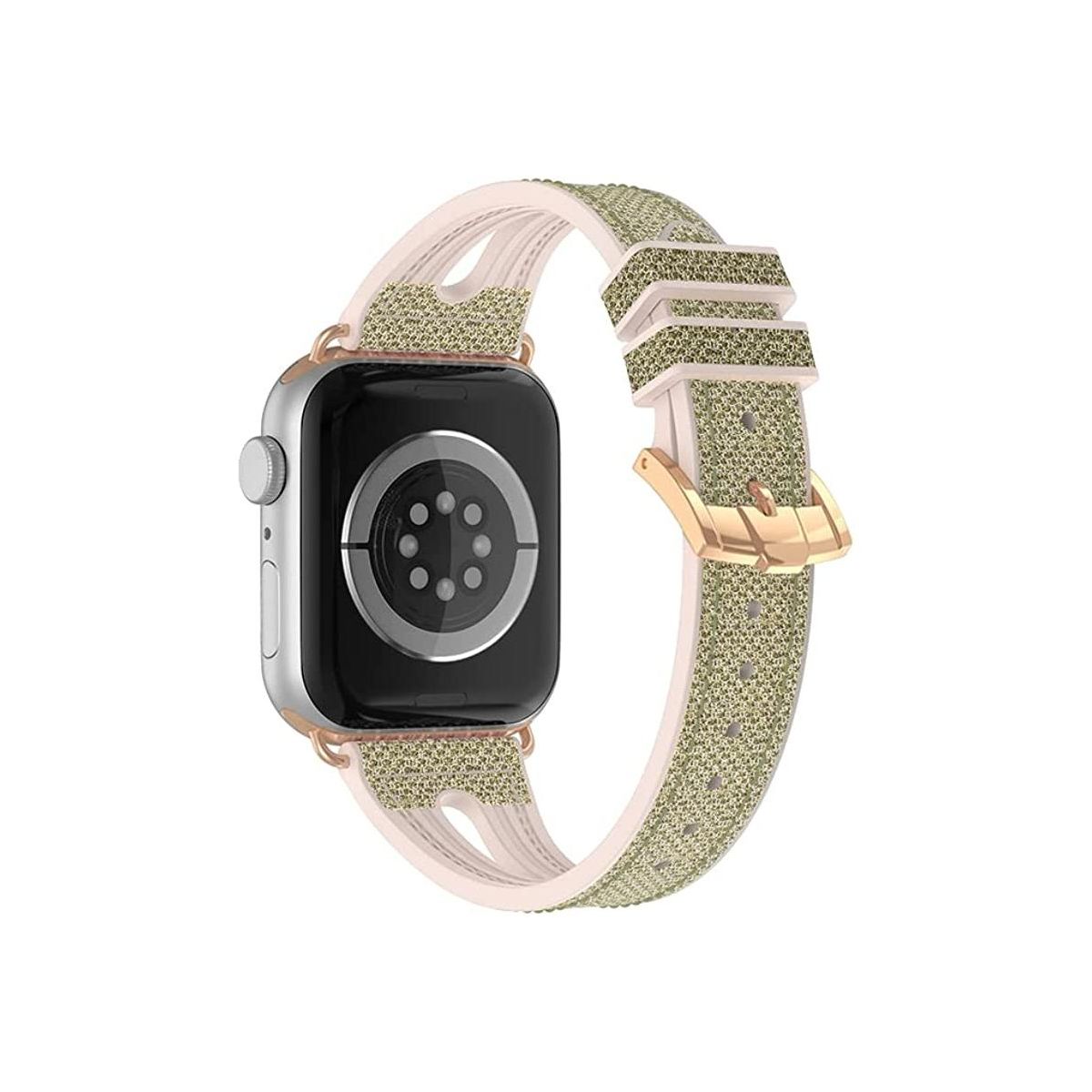 Unique Slim design makes your silicone apple watch band thinner, lighter and less bulky, The thin Shiny Apple Watch strap is also designed with pretty hollowed out droplet-shaped to make you feel more comfortable and breathable. Fashionable slim soft silicone band comes with a buckle on one end which locks onto iWatch interface precisely and securely, for easy installation and removal. Multiple colors choices for women and men to personalize their iWatch. These Shiny bands are made of durable and soft silicone with bling shiny slim design, waterproof, elastic, lightweight and environment friendly. Unique sport silicone band, with greater flexibility and narrower width, soft pliable silicone material provides comfortable and gentle feeling for your wrist, a good choice for sport or exercise. Compatible Models Compatible for Apple Watch Series 8, 7 45mm 41mm Compatible for Apple Watch SE Series 6/5/4 44mm 40mm Compatible for Apple Watch Series 3/2/1 42mm 38mm