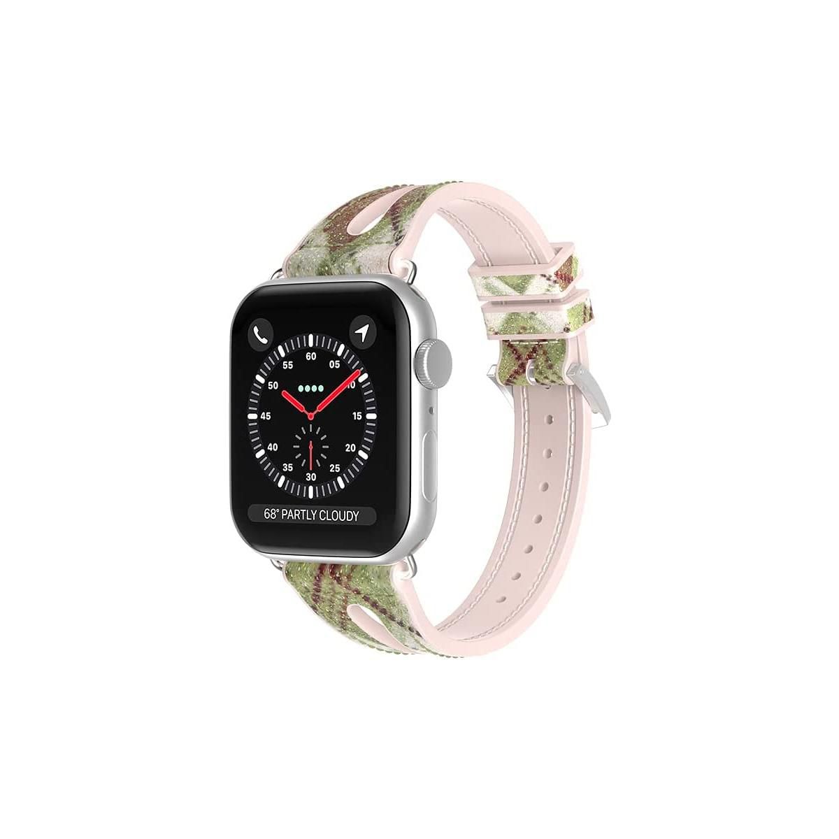Unique Slim design makes your silicone apple watch band thinner, lighter and less bulky, The thin Shiny Apple Watch strap is also designed with pretty hollowed out droplet-shaped to make you feel more comfortable and breathable. Fashionable slim soft silicone band comes with a buckle on one end which locks onto iWatch interface precisely and securely, for easy installation and removal. Multiple colors choices for women and men to personalize their iWatch. These Shiny bands are made of durable and soft silicone with bling shiny slim design, waterproof, elastic, lightweight and environment friendly. Unique sport silicone band, with greater flexibility and narrower width, soft pliable silicone material provides comfortable and gentle feeling for your wrist, a good choice for sport or exercise. Compatible Models Compatible for Apple Watch Series 8, 7 45mm 41mm Compatible for Apple Watch SE Series 6/5/4 44mm 40mm Compatible for Apple Watch Series 3/2/1 42mm 38mm