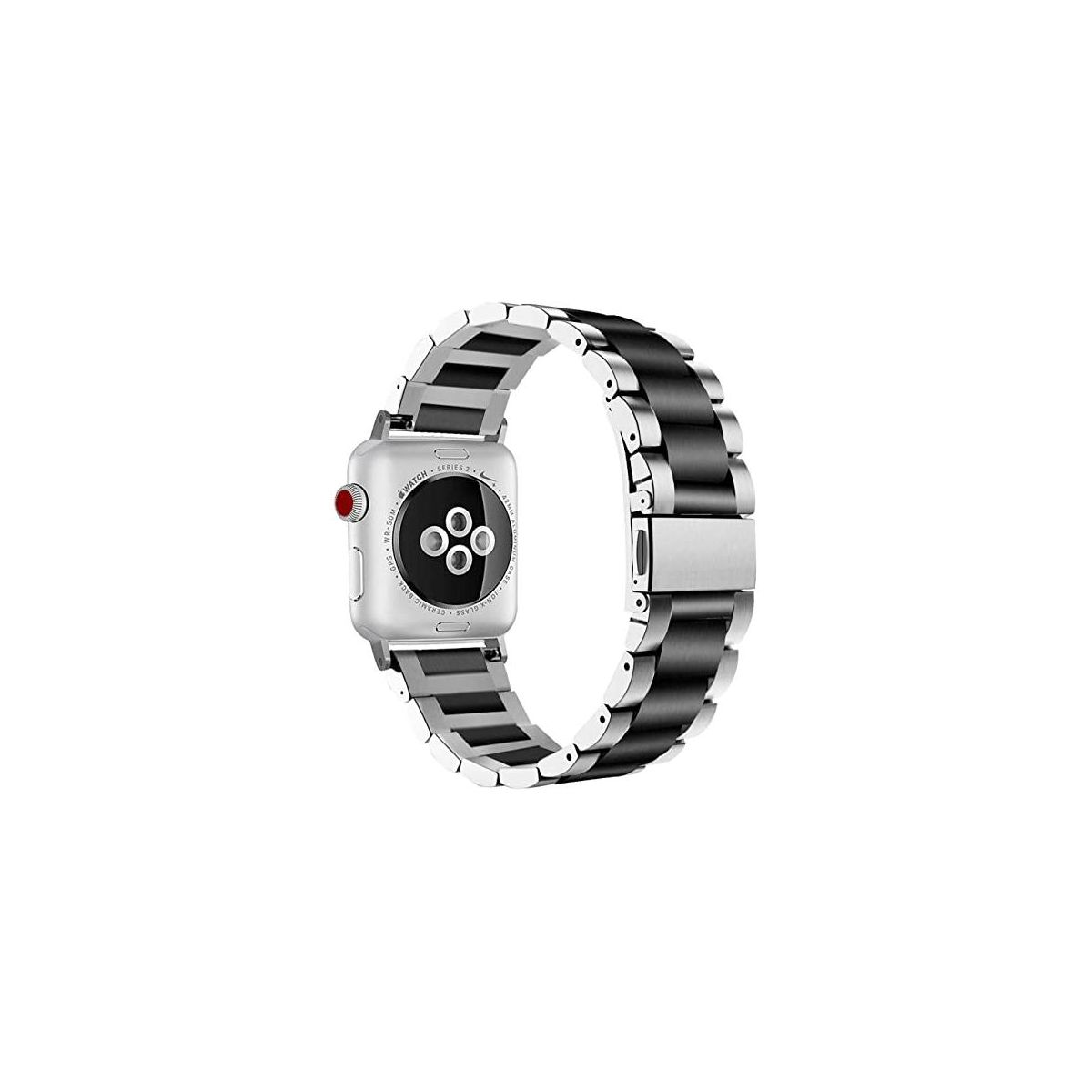 Worryfree Gadgets Stainless Steel Two Tone Classic Band for Apple Watch 42/44/45/49mm-Black/Silver