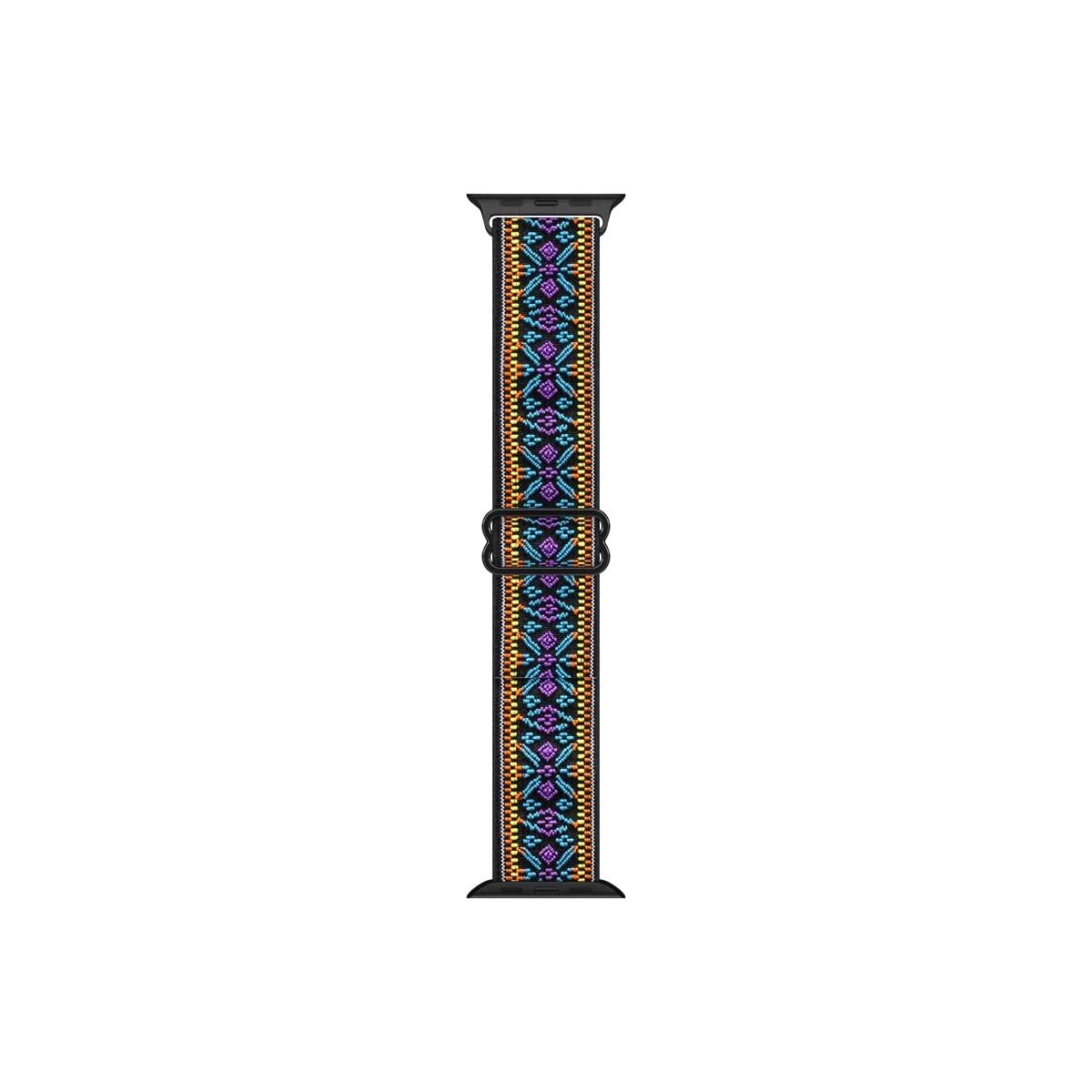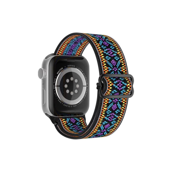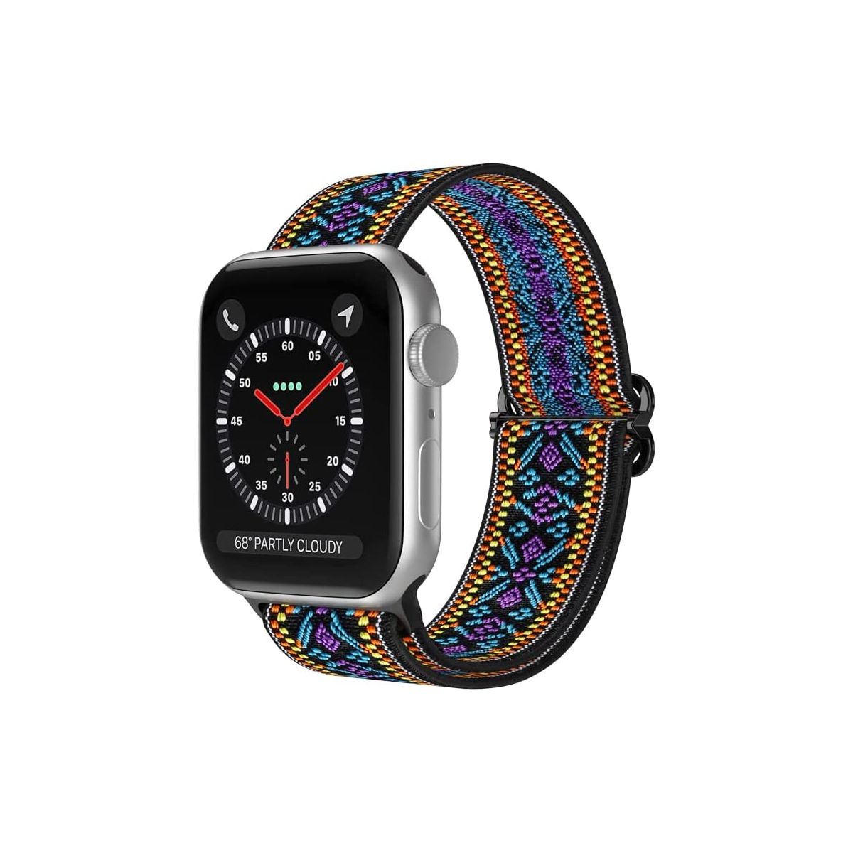 Unique Pattern Nylon band for iWatch with metal adapters. Stretchy Nylon Bands Compatible with Apple Watch 38mm 40mm 41mm 42mm 44mm 45mm. Adjustable Elastic Braided Wristbands, Solo Loop Sport Strap for iWatch Series 8 7 6 5 4 3 2 1 SE for Women and Men. The watch band is made of premium stretch Nylon. It is soft, durable, lightweight, washable and comfortable to wear. Stretch bracelet wrist bands and fits snugly without constriction. Close to your wrist, it won't irritate your skin, perfect for all day-workouts and regular wear. Elastic band and adjustable stainless steel buckle design. The stretch nylon materials make the strap easy to put on and off. Stylish loop buckle make it could be length adjustable as you wish. Adjust your Watch to your mood and your outfit in everyday life. You can mix different colors of wristbands to beautify your iWatch and highlight your unique taste. Compatible with all Series 8, 7, 6, 5, 4, 3, 2, 1 & SE Size: 38mm 40mm 41mm and 42mm 44mm 45mm