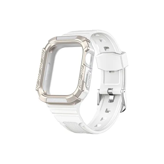Worryfree Gadgets TPU Band with Protective Bumper Case for Apple Watch 40mm 41mm 44mm 45mm - 40mm/41mm - White-Silver