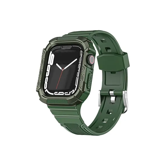 Worryfree Gadgets 2 in 1 Band with Bumper Case for Apple Watch 40mm 41mm 44mm 45mm. Strong Built Sports Band for Apple Watch. This Dual Color Solid iWatch Band with Bumper Case is Shockproof Rugged Band Strap for iWatch size 40mm/41mm or 44mm/45mm