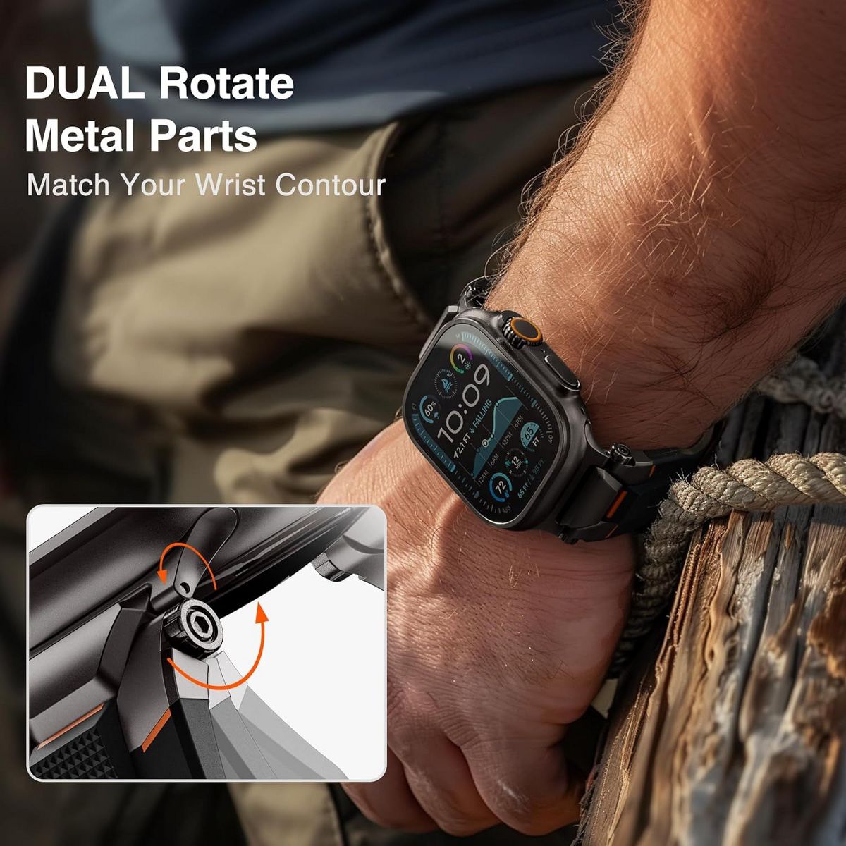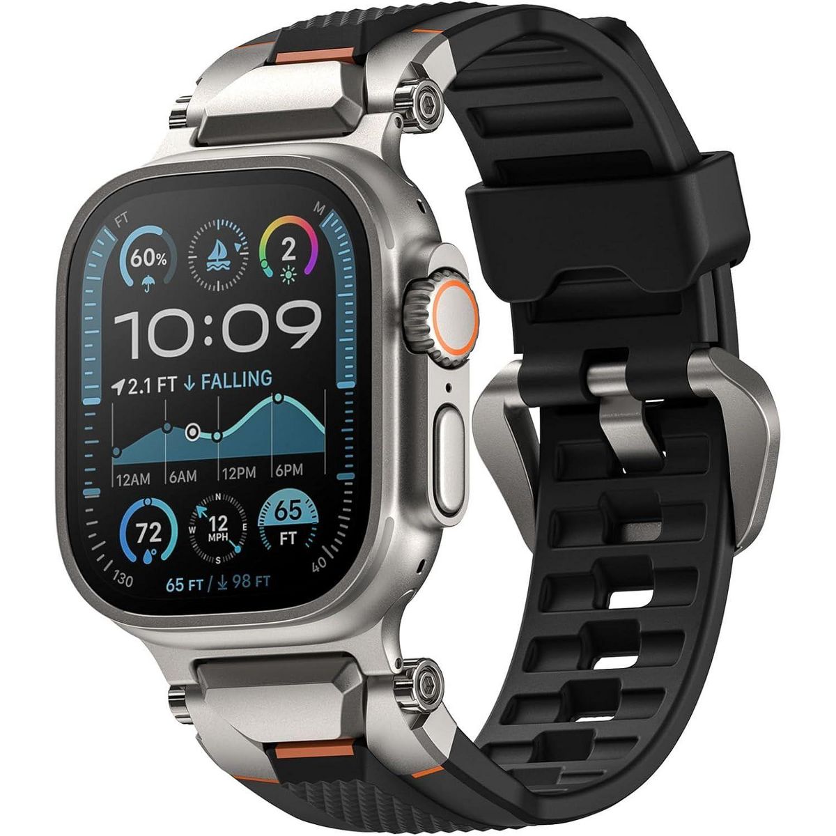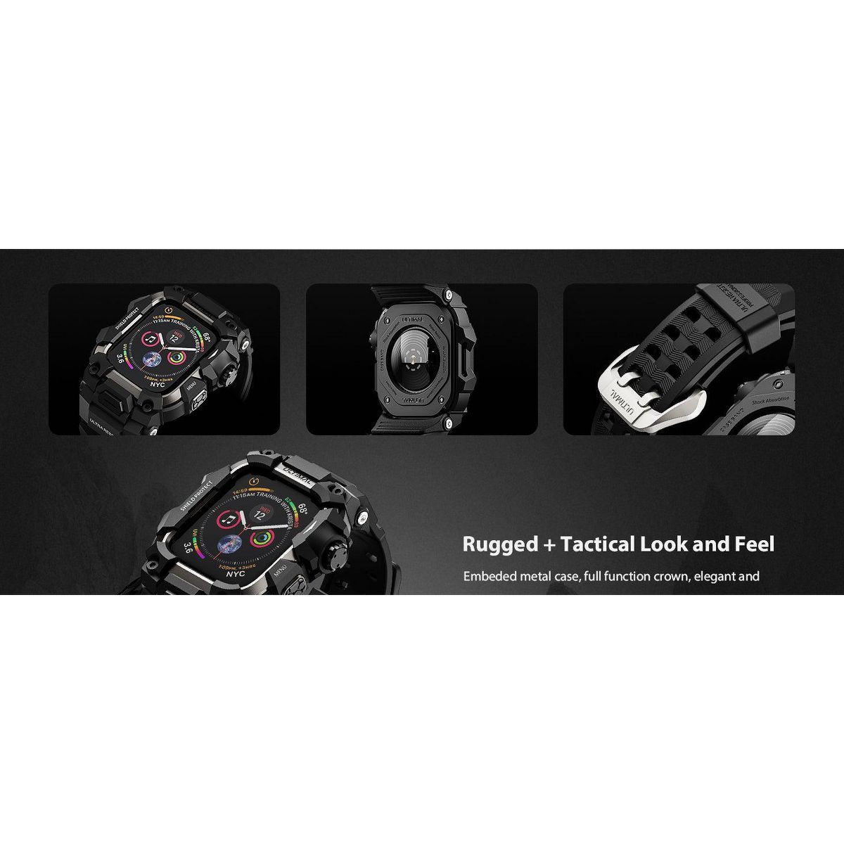 WorryFree Gadgets Ultimal Series Steel Fighter Bands for Apple Watch 42/44/45/46/49mm- Adjustable Strap for Apple Watch Ultra & Series Black/Titanium