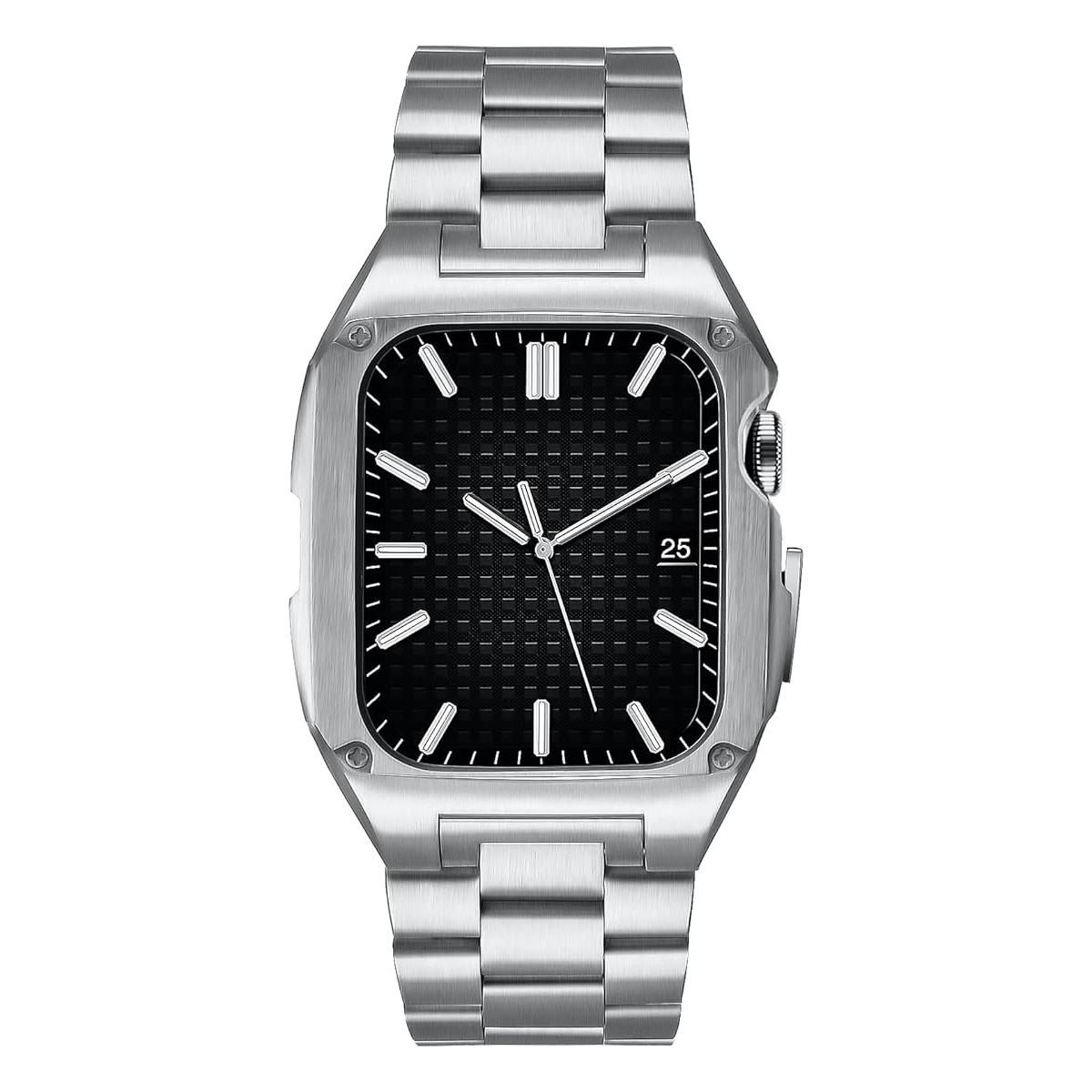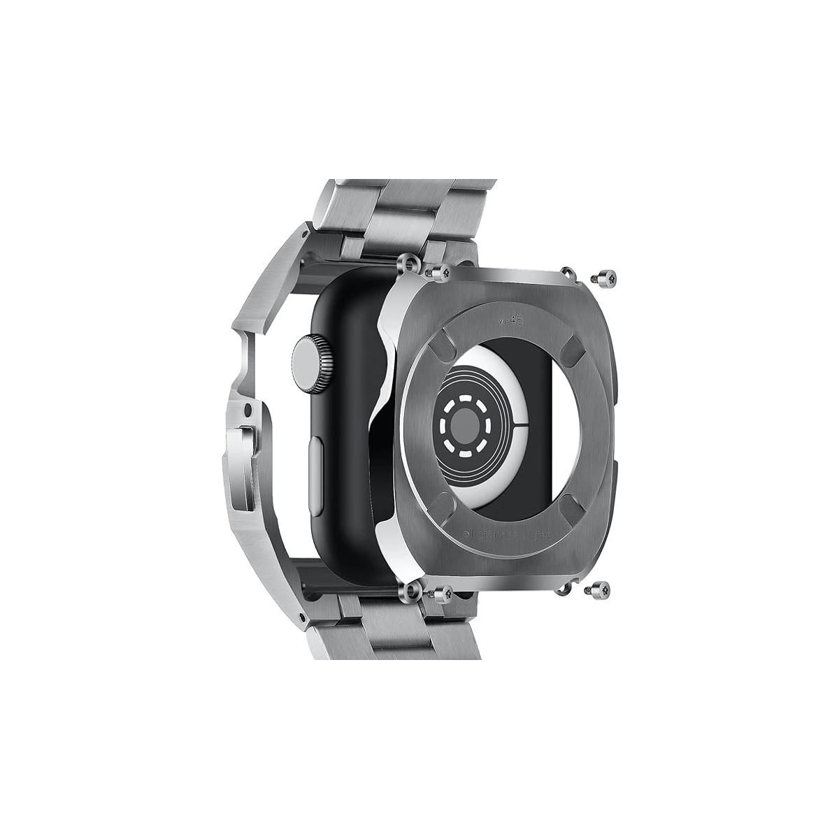 Worryfree Gadgets Uni-body Metal Band for Apple Watch 45mm Series 8, Silver