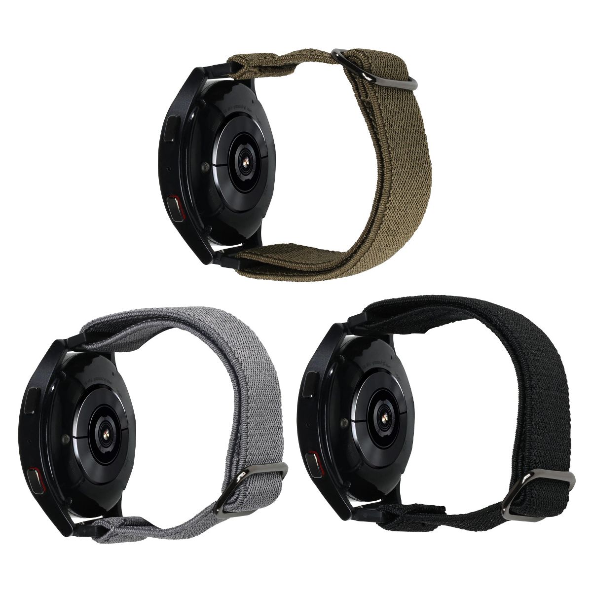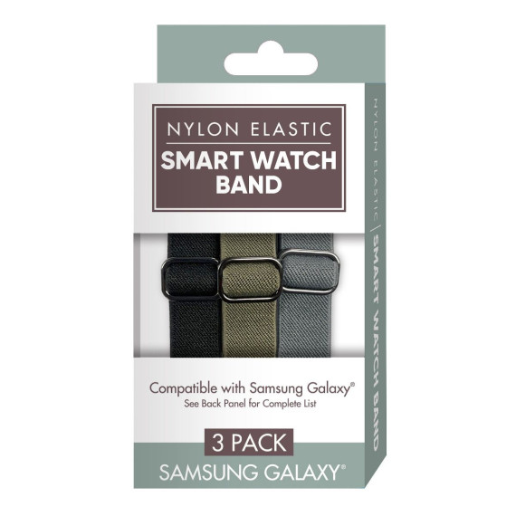 Upgrade your Samsung Galaxy Watch with the Xtreme Smart Watch Nylon Braided Elastic Band 3 Pack. These bands are designed for smaller wrists and offer premium comfort with their breathable, stretchy nylon material. Each band features an adjustable buckle for a custom fit and secure stainless steel connectors, ensuring a snug and reliable attachment. The pack includes Black, Army Green, and Dark Gray colors, making it a versatile accessory set for any occasion. Perfect for men and women, these replacement bands combine style, comfort, and ease of use.