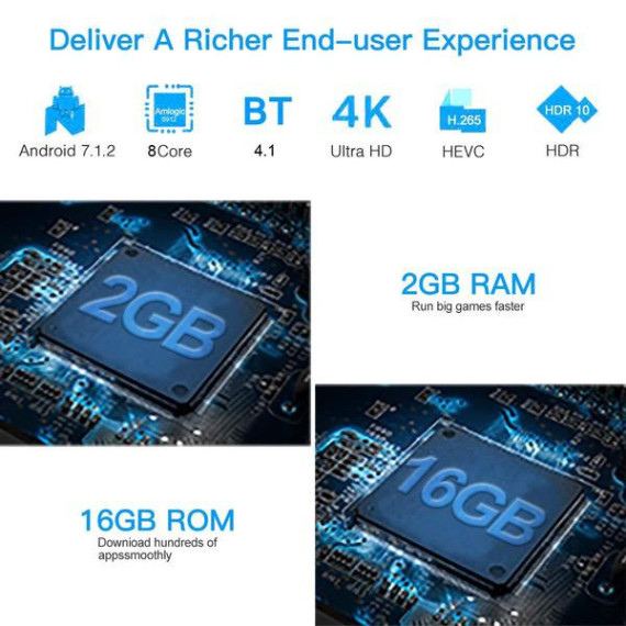 - ♧Affordable Entertainment Device: Adopt the latest ANDROID 7.1.2 system, will be more stable. Amlogic S912 Octa core, 2.0GHZ CPU, 2GB RAM +16GB ROM, and expanded storage to 32G, enough for your home theater system