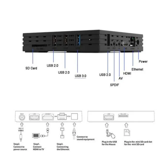 - The EstgoSZ H96 Max TV BOX has 1 High speed USB 3.0 and 3 High speed USB 2.0, Support mouse, keyboard, U disk and other USB device, meet people's different requirements
