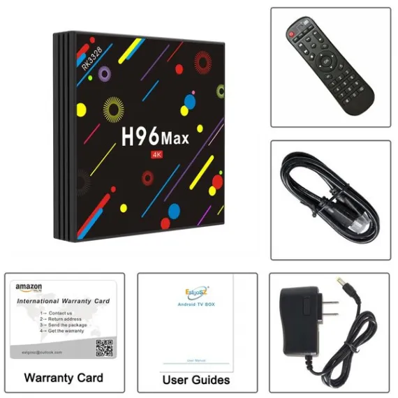 - EstgoSZ H96 Max H2 TV BOX with 4G DD3, 32G EMMC, powered by latest Android 7.1 system and RK3328 Quad Core CPU and Penta-Core Mali-450