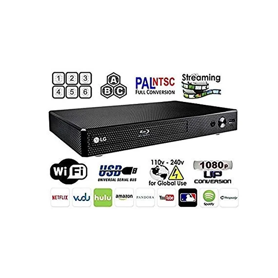 LG BP-350 Region Free Blu-ray Player, Multi Region Smart WiFi 110-240 Volts, 6FT HDMI Cable & Dynastar Plug Adapter Bundle Package