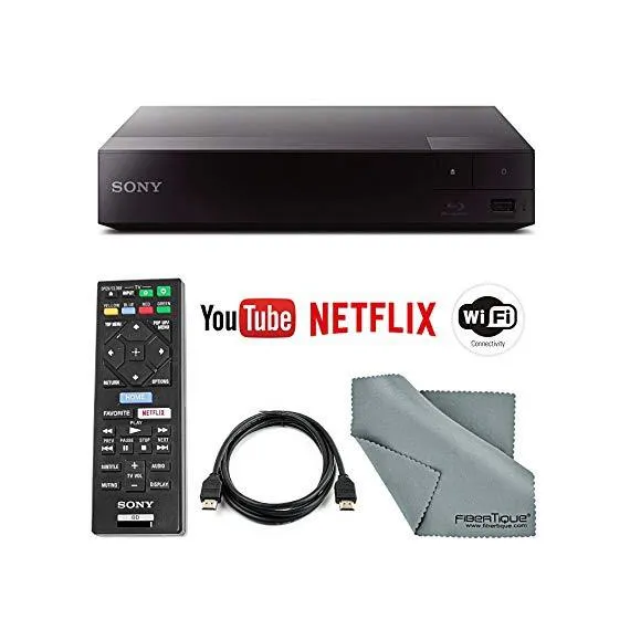 Sony BDP-S3700 Wi-Fi Blu-Ray Disc Player with HDMI Cable + Remote + FiberTique Cleaning Cloth