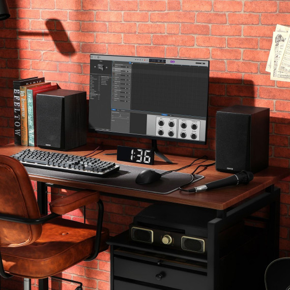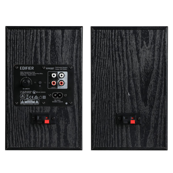 The Edifier® R990BT 2.0 Active Multimedia Speakers elevate your audio experience with Bluetooth® v5.4 audio receiver for seamless audio streaming. Each speaker cabinet contains one 1-in. silk dome tweeter and one 4-in. long-throw mid-low driver. The MDF cabinet effectively reduces resonance and distortion, ensuring accurate reproduction of audio input. The dual RCA inputs allow you to connect 2 devices simultaneously, eliminating the need to constantly plug and unplug. The digital amplifier is capable of driving 12 watts to each of the stereo pair and providing DRC (dynamic range control). With a total output power of 24 watts RMS, the speaker pair can produce sufficient sound to fill a medium-sized room.