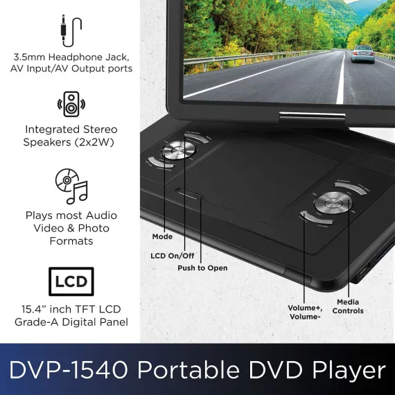 Impecca 15.4” Portable DVD Player with Flip & 270 Swivel Widescreen