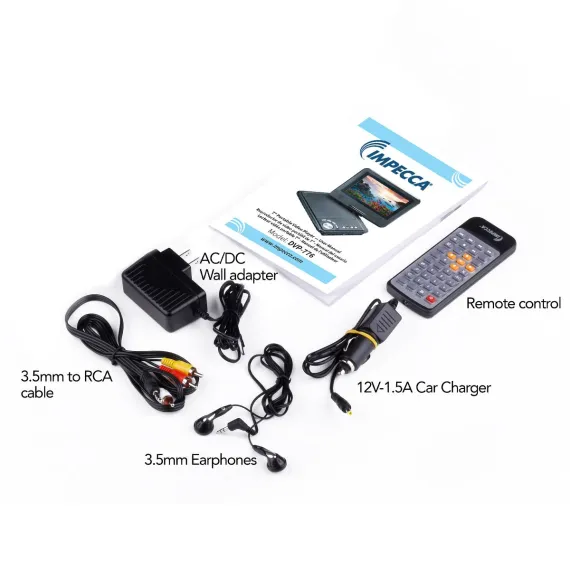 Impecca Portable DVD players make all the difference for your family and folks! Enjoy 7” compact size for portability, and view at all angles with flip/swivel screen! The DVP-776, has built in USB & SD/SDHC memory card slots, and plays most audio, video and photo formats. Enjoy built in stereo sound for group listening, or plug into headphones for personal enjoyment. Impecca DVD players, ensure a most pleasurable watching experience with quality sound and crisp color display. Make it yours with 4 color choices you’re sure to love. Choose one of our Impeccable solutions, you’ll be pleased you did!