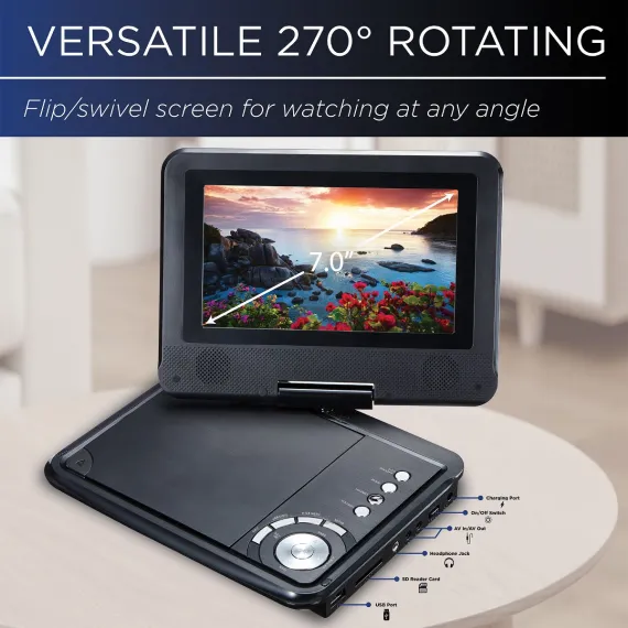 Impecca 7” Portable DVD Player with Flip and 270 Swivel Widescreen