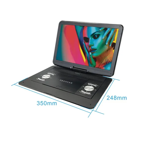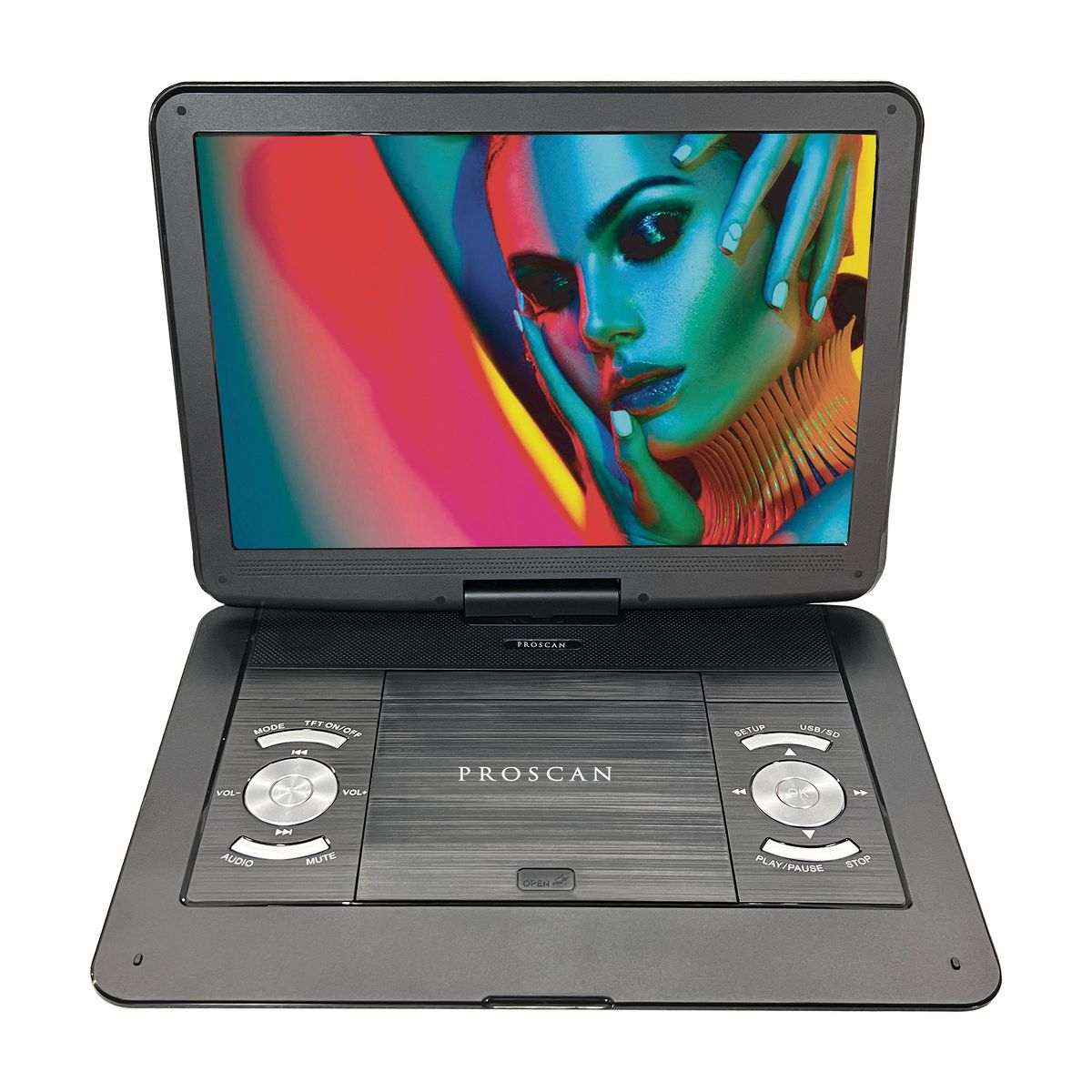 Proscan® Elite 480p Portable DVD Player with 13.3-In. Swivel Widescreen, Built-in Speakers, Rechargeable Battery, Earbuds, and Remote in Black