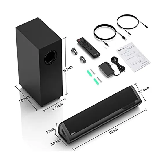 Itopfox 2.1 Sound Bar with Wireless Subwoofer Deep Bass Home Theater Speaker System for TV PC Gaming Bluetooth/Optical Connectivity, Wall Mountable