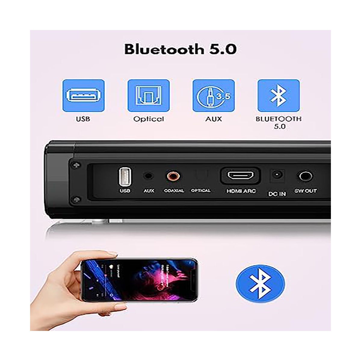 Itopfox 2 in 1 Separable Sound Bar for Smart TV with Subwoofer, Bluetooth 5.0 Surround Sound System, ARC/Optical/USB, Treble/Bass Adjust, 10 EQ Modes
