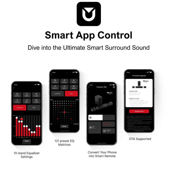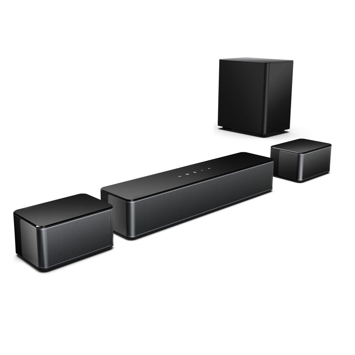 Upgrade your home entertainment with this 5.1 sound bar system. Boasting 410W of power, it features a true 5.1 immersive surround - sound experience. The advanced decoding technology is compatible with various media sources, like Blu - ray and popular streaming services. With three modes accessible via the remote control, it adapts to different scenarios, whether you're watching a movie, having a dialogue - heavy show, or listening to music. The adjustable surround speakers and subwoofer offer flexibility in setup, and the subwoofer's BassMX technology enhances low - frequency sounds. The HDMI - eARC ensures high - resolution, lossless audio transmission. Moreover, the customized sound EQ software allows you to personalize your audio experience. Bring the cinematic experience right into your home with this sound bar system.