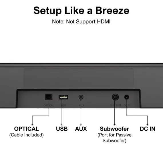 Upgrade your home theater experience with this 5.1ch sound bar system. It features 3 main channels and 2 surround speakers, powered by SurroundX technology for 99.99% audio detail precision. The AI fine - tunes the sound, creating a realistic virtual surround sound field suitable for spaces from 108 to 215 ft². Connect the 2 surround speakers with a cable and pair them wirelessly with the TV sound bar. The 4 - inch wired subwoofer uses advanced bass technology to produce deep, resonant bass, intensifying action scenes. Control the sound bar via a smart app, where you can switch EQ settings, adjust bands and matrix. There are 121 preset EQ matrices for 4 sound profiles and 6 specially designed EQ modes. With the app's "Customize" feature, you can create a personalized sound profile. Peak power reaches 250W, offering an immersive audio experience for movies, music, games, and more.