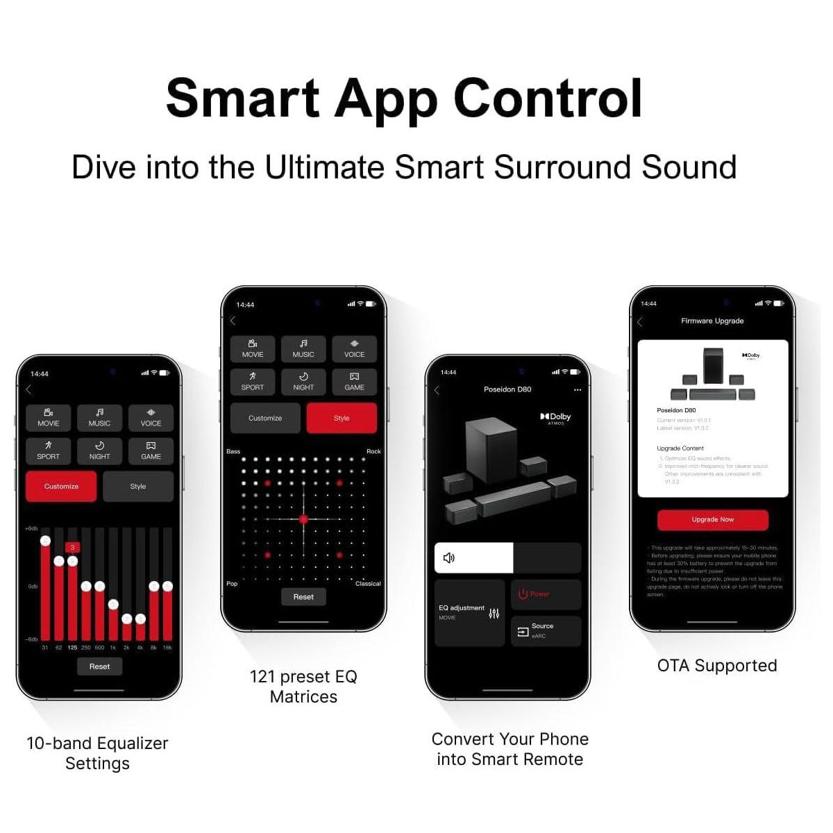 Upgrade your home entertainment with this advanced sound bar. It features a 7.1Ch smart surround sound system with eight high - performance drivers, including a 6.5” wireless subwoofer. The Dolby Atmos technology dynamically adapts audio, creating a 360° sound environment. With two innovative audio technologies, it projects sound from every angle. The 1 - in/1 - out 4K HDMI with eARC simplifies setup and ensures compatibility with various devices. Use the smart app for full control, OTA updates, and customizable settings. It also offers 121 expert EQ presets and multiple tailored modes for precision audio tuning. Whether you're watching movies, TV shows, or playing games, this sound bar provides an immersive audio experience, making it a must - have for your home theater.