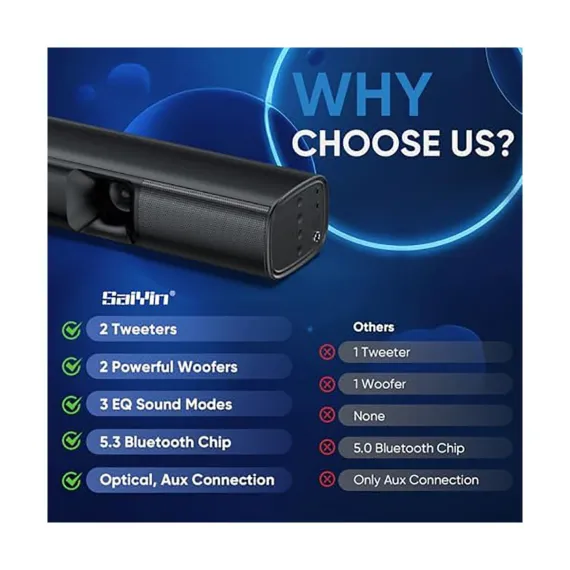 Itopfox Sound Bar for Smart TV - 50W Powerful TV Sound Bar with Clear Dialogue & Enhanced Bass, Bluetooth 5.3, Optical & AUX, perfect for Smart TVs