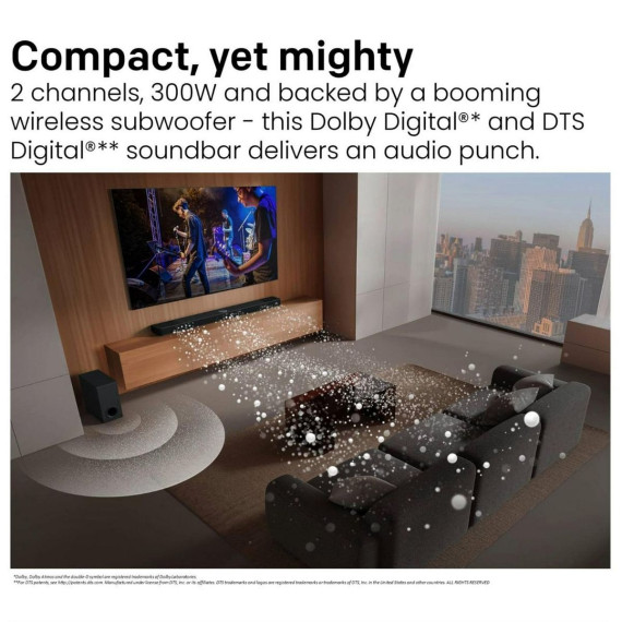 Transform your home entertainment with the LG S40T 2.1 Channel Soundbar — the perfect upgrade for any TV. With powerful room-filling sound and deep bass from the included subwoofer, this sleek soundbar delivers a cinematic audio experience without the complicated setup. Bluetooth connectivity lets you stream music wirelessly from your phone, while HDMI ARC and Optical inputs ensure simple, high-quality TV connection. Designed to enhance everything you watch, from movies and sports to gaming and daily TV, the LG S40T brings clarity, power, and immersive audio into your living room.