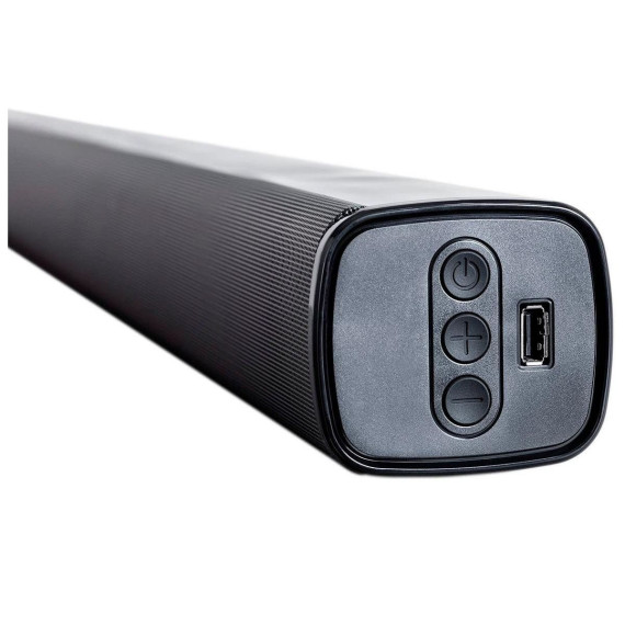 Enhance your home entertainment system with the Monoprice SB-100 2.1-channel soundbar. This 36 inch soundbar features 80 watts of power driving two dynamic drivers and two integrated bass drivers to deliver superior audio and room filling sound. The SB-100 design allows it to fit easily beneath your TV or mounted on the wall. A host of connectivity options make the SB-100 versatile and compatible with most home theater equipment and television sets.