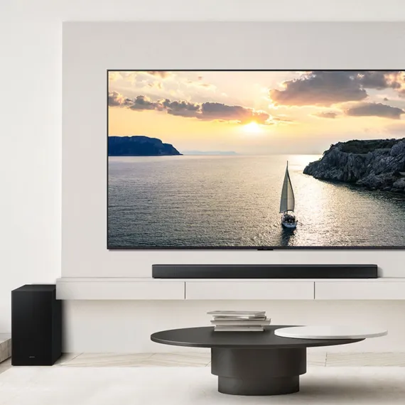 Q-SymphonyProvides a more immersive sound experience with Samsung TV and Soundbar speakers working together for more robust and nuanced sound. With compatible AI TVs it enhances audio for even more clarity.
