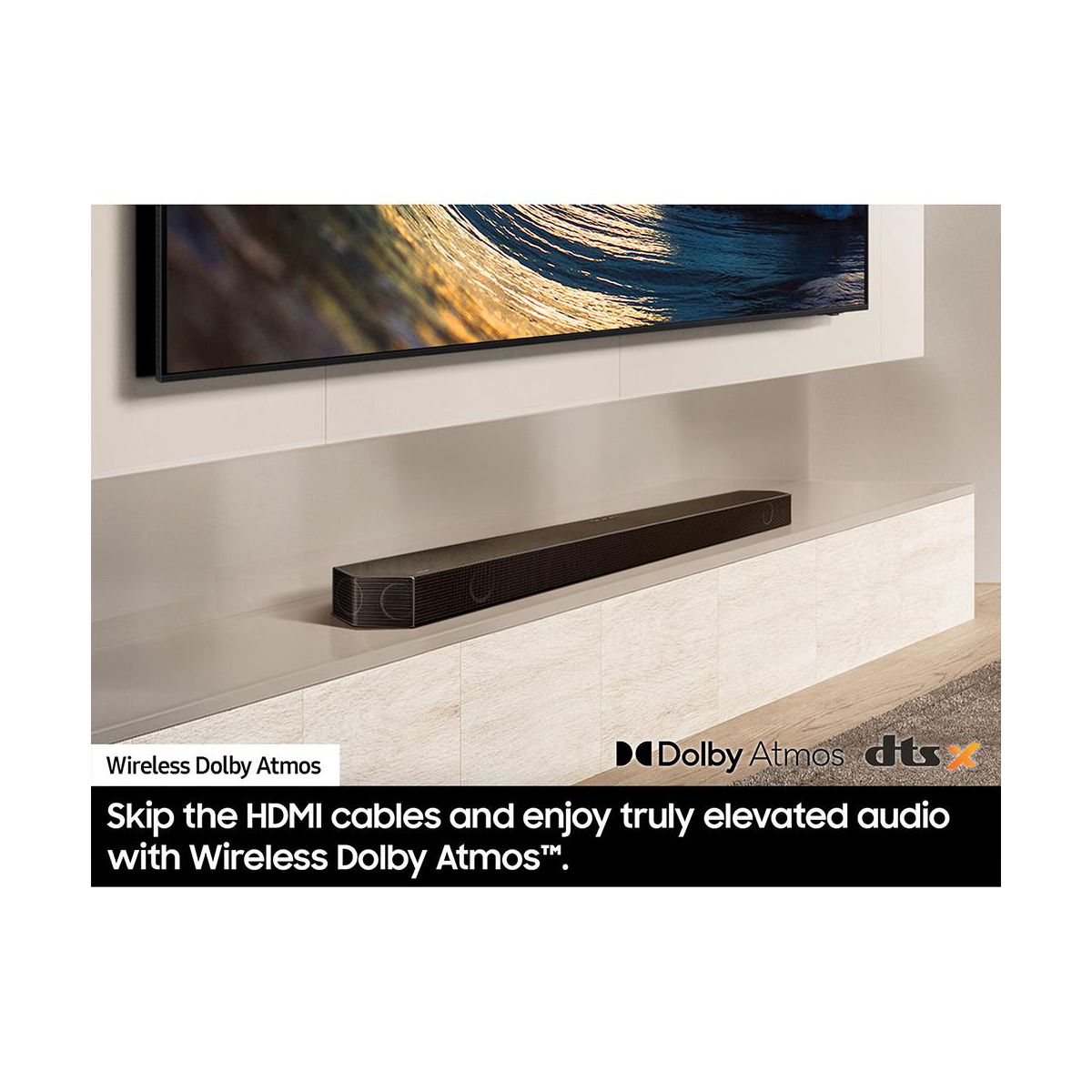 Experience next-level synergy with Q-Symphony, which allows compatible Samsung TVs and soundbars to work together as one unified audio system. Wireless Dolby Atmos frees you from HDMI clutter, while SpaceFit Sound Pro automatically analyzes your room and optimizes sound for your unique space.