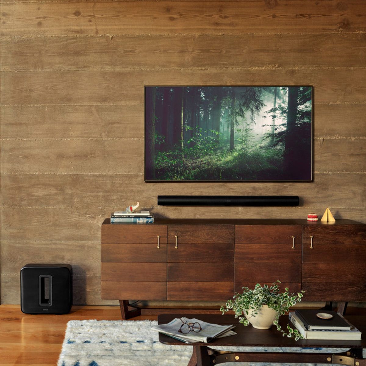 Immerse Yourself in the MusicStream music radio podcasts and more from your favorite services with the Sonos app or Apple AirPlay 2 when the TV is off.