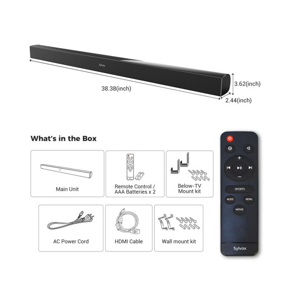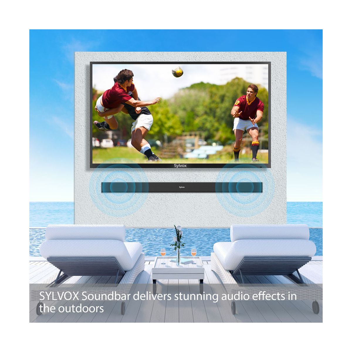 SYLVOX Soundbar for Outdoor TV, 2.0 Channel Home Theater Sound Bar for Compatible with 8K, 4K, HD TV, 120 Watt, Bluetooth 5.0, 4 EQ settings