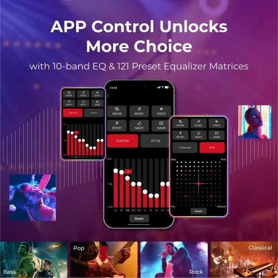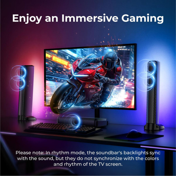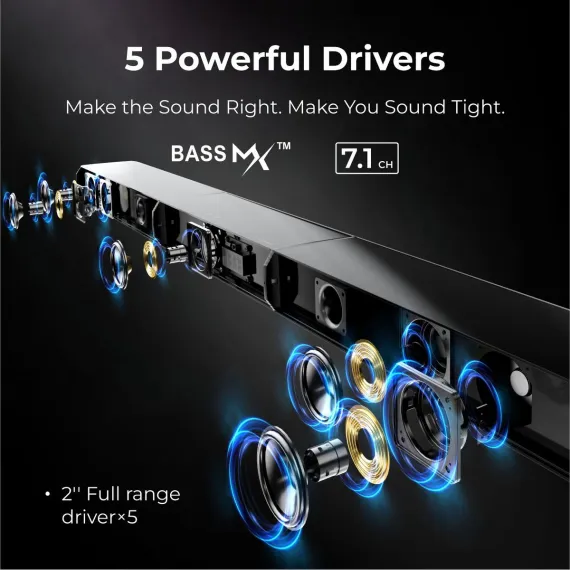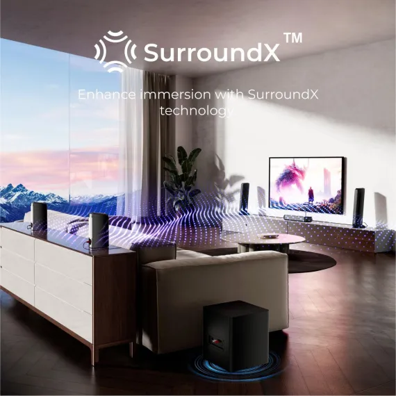 Step into immersive audio with the ULTIMEA 7.1 Channel Virtual Surround, complete with dual rear speakers and a powerful 6.5" subwoofer. Designed for smart TVs, it delivers a wide, multi-directional soundstage that transforms everyday viewing into cinematic experiences. With 410W of peak power and customizable RGB lighting, this system enhances both sound and atmosphere. Whether you're gaming or enjoying a movie night, the vibrant backlighting adds an extra dimension of immersion, reacting to every beat and scene. The modular, detachable design adapts to any room layout, while Bluetooth, HDMI, OPT, and AUX ensure effortless connections. Fine-tune EQ, lighting, and sound modes with the ULTIMEA app-personalized control for next-level entertainment.