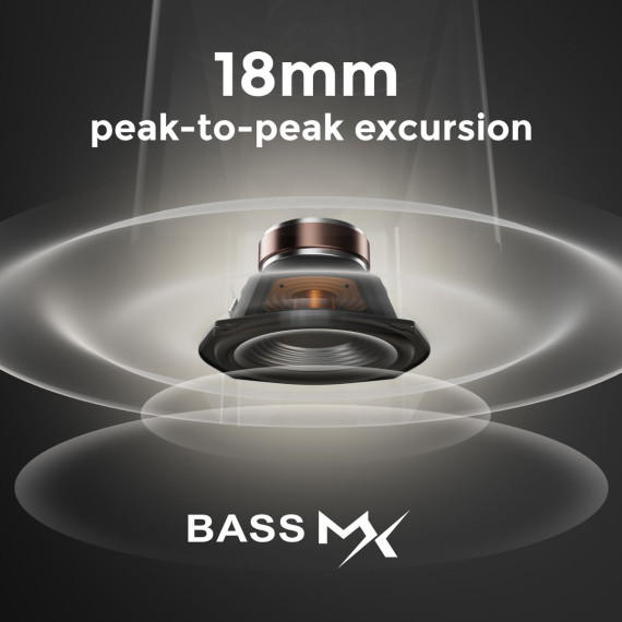 Enjoy immersive 4D sound with real Dolby Atmos and 5.1-channel audio. Featuring five precision-tuned full-range drivers and a dedicated wired wooden subwoofer, the system delivers up to 340W of peak power for bold, room-filling sound. With a frequency response of 45 Hz–18 kHz and a maximum SPL of 99 dB, it reproduces everything from subtle nuances to explosive cinematic effects. Powered by BassMX technology, the wired wooden subwoofer features a 18 mm high-excursion driver, a upgraded cabinet, and a high-density magnetic circuit. This design delivers deeper, tighter bass with greater air displacement and enhanced low-frequency performance-bringing more realism to every scene.