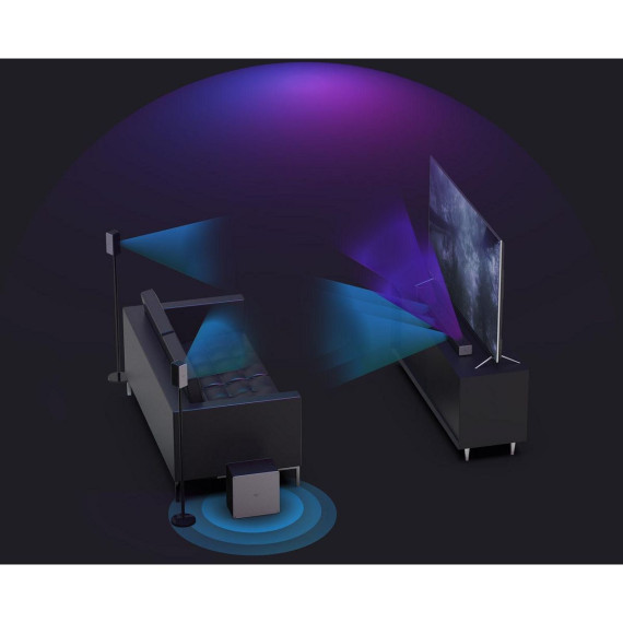 Experience cinema-quality audio from America's #1 Sound Bar Brand. Experience an immersive new dimension of surround sound with Dolby Atmos. Cinema-inspired sound from every angle. Even from above. Experience movies, original series and more in a whole new way in Dolby Atmos. Experience true cinematic surround sound with dedicated rear surround speakers. Wireless subwoofer delivering room-shaking bass. Works with Google Assistant. Multi-room streaming capable. Stream wirelessly via Chromecast or Bluetooth. Feel Every Dimension. Full 360° Sound. Wireless subwoofer designed for a new level of deep. Multi‑dimensional surround sound from upward and front firing speakers. Mastered in Dolby Atmos Sound design is a crucial aspect of filmmaking. Your favorite movies and TV shows are now being formatted in Dolby Atmos for streaming and Blu-ray.