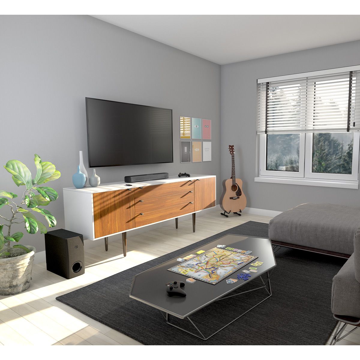 Ace of SpaceGood on space and on bass. Packed with virtual 3D surround sound Clear Voice and Adaptive Low Volume technologies inside a footprint made for versatility. A wireless compact subwoofer wants to be heard but not seen place it vertically or horizontally. Bluetooth and easy setup options make listening simple. Wall-mount for even more space-saving possibilities.