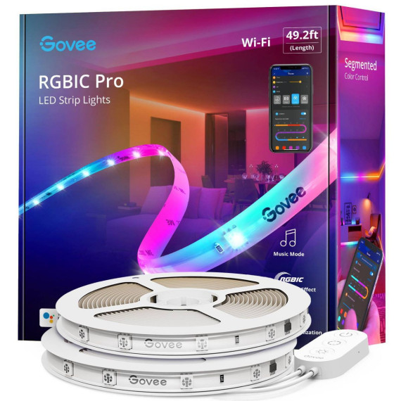 Govee 49.2' Wi-Fi RGBIC LED Strip Light: Home Theater Bias Lighting