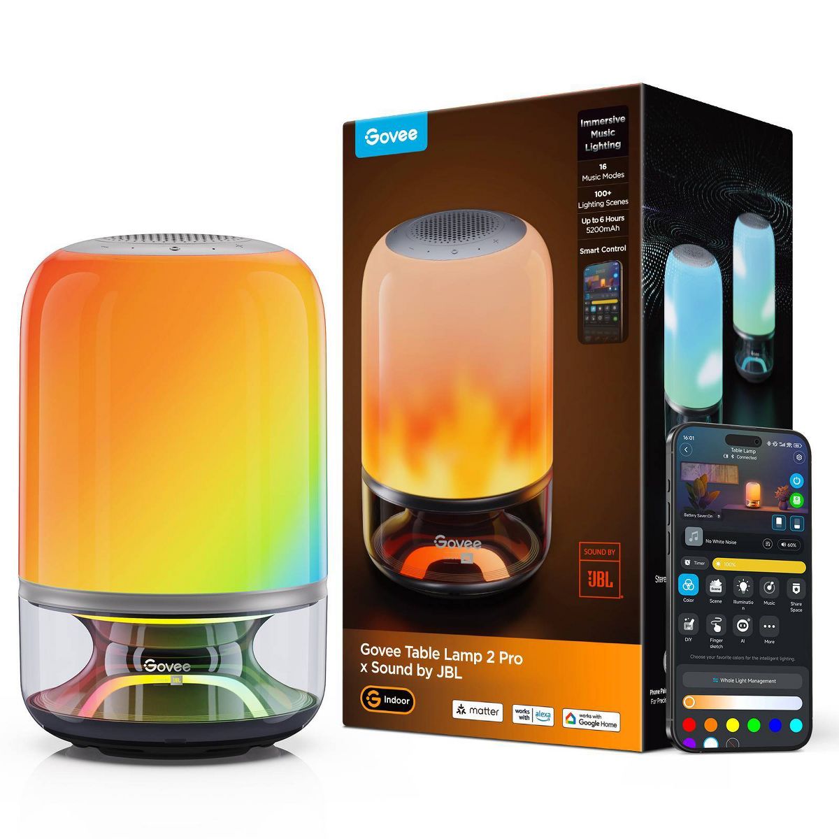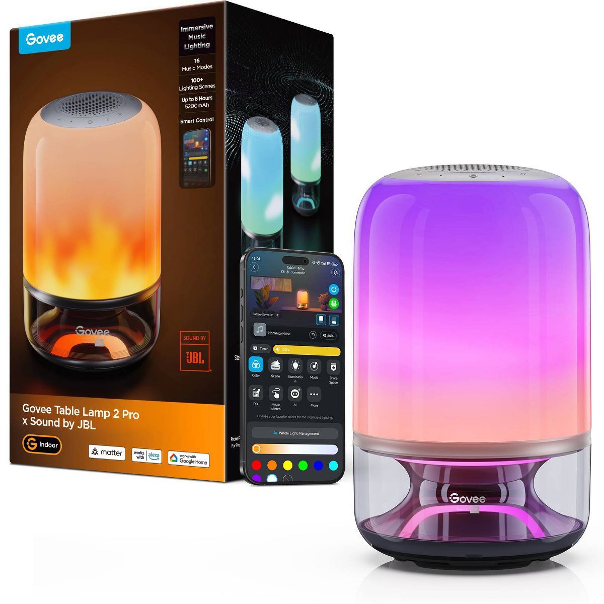 Elevate your space with Govee Table Lamp, featuring millisecond music-light sync, 210 customizable LED beads, and Sound by JBL. Enjoy immersive audio-visual experiences, smart voice control, and 4.5-hour unplugged entertainment. It also offers over 100 scene modes and stereo pairing for a powerful, room-filling experience,perfect for bedrooms, gaming setups, or modern home decor.