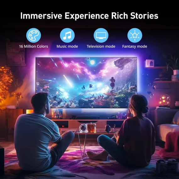 Enhance your viewing experience with Sympa's 2 Pack HDMI Sync RGBIC Smart TV Backlight. Seamlessly integrates with smart home systems for vibrant, customizable lighting.