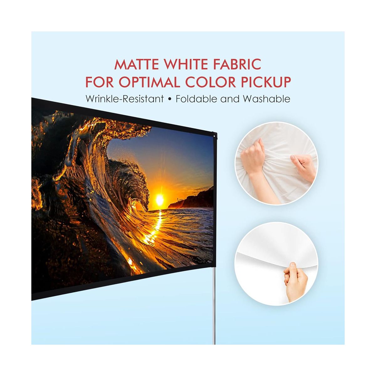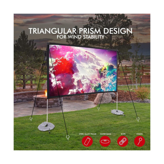 The Pyle 100-Inch Portable Outdoor Projection Screen (PRJOS100) is perfect for creating a home theater experience anywhere, indoors or outdoors. This matte white screen is designed to provide optimal color pickup and vivid image quality. Its wrinkle-resistant, foldable, and washable fabric ensures easy maintenance and durability.