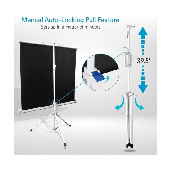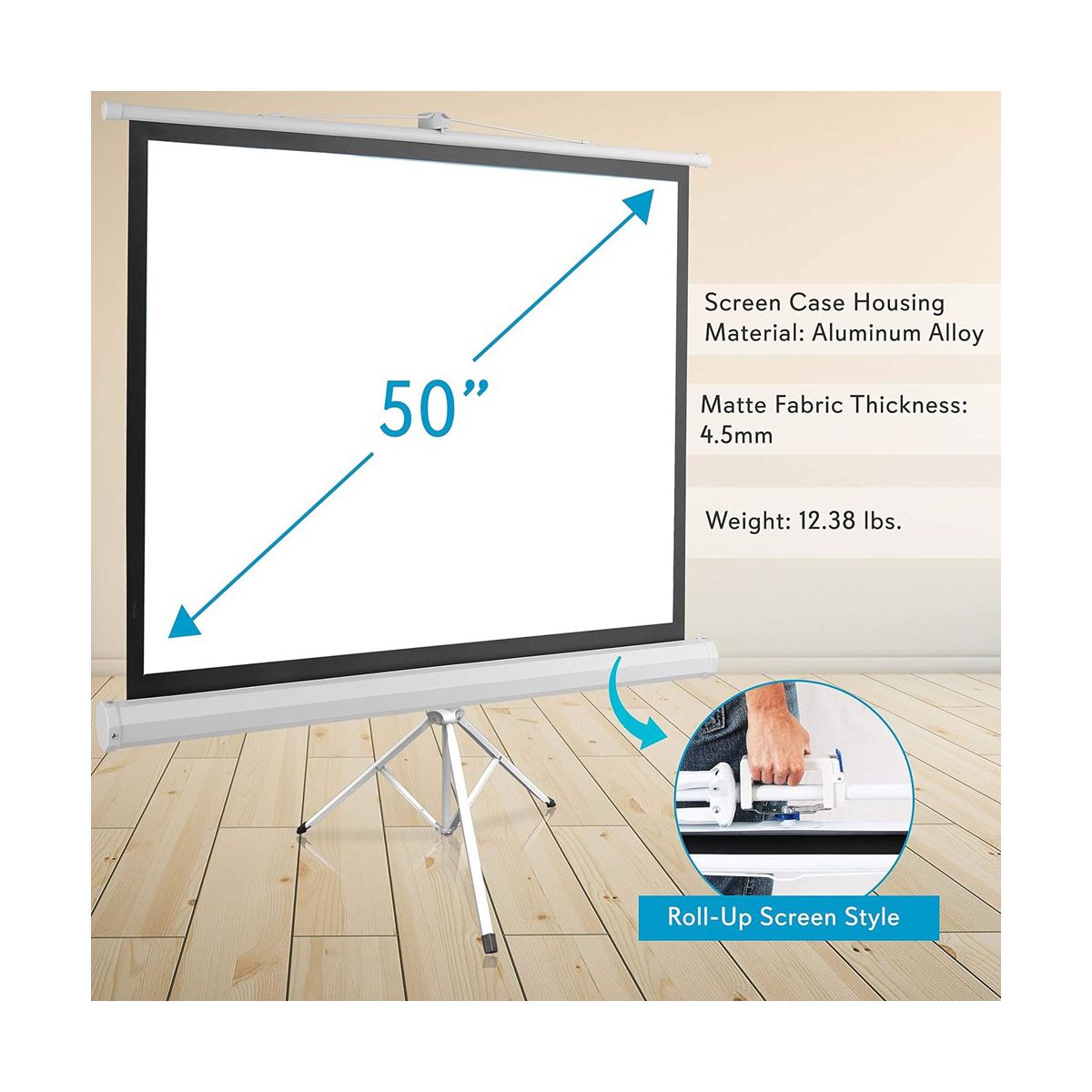 Pyle 50-inch Tripod Stand Projector Screen, Easy Fold-Out & Roll-Up Projection Display - PRJTP52