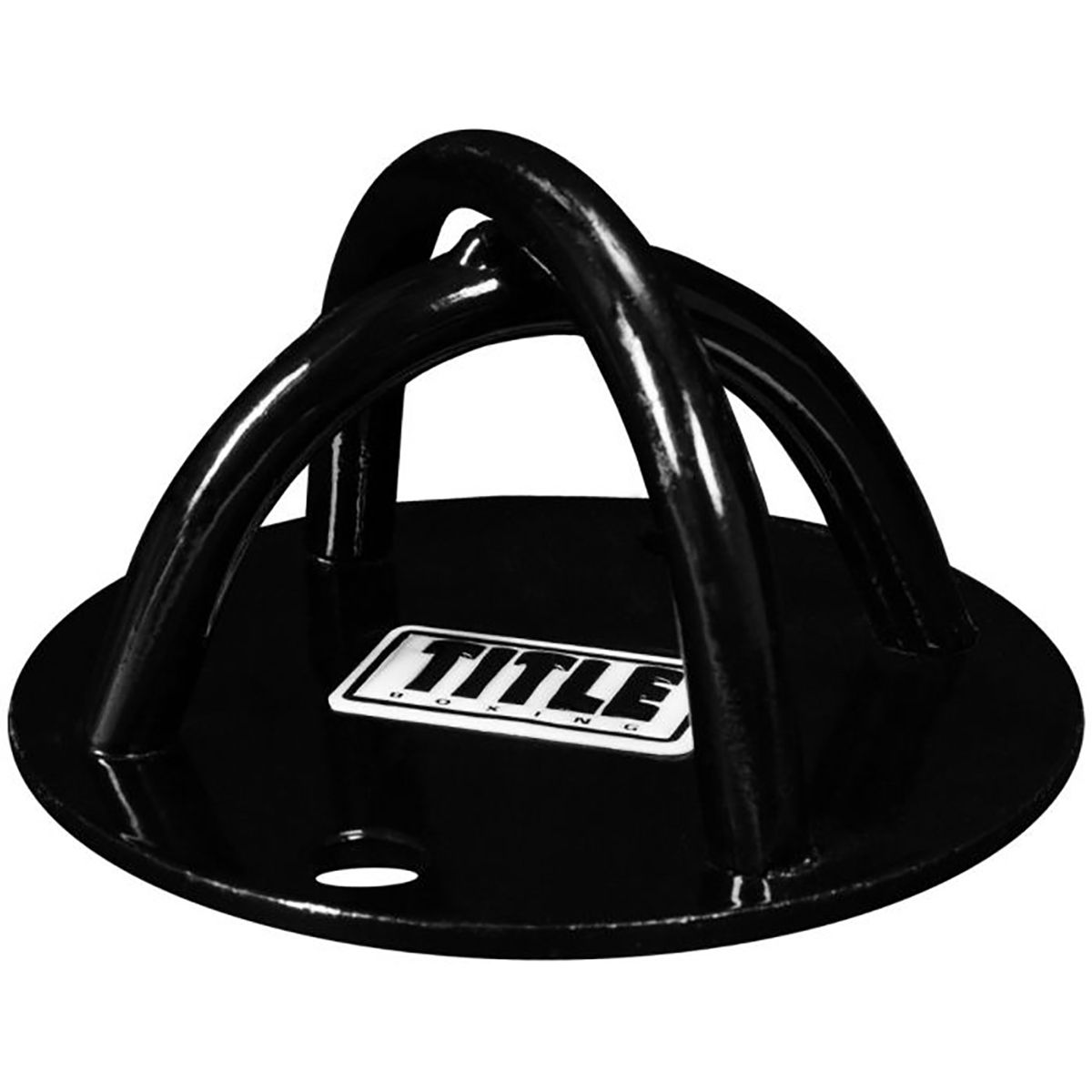 The Title Boxing Dual Arch Floor and Ceiling Mount is a super heavy-duty, one-piece solid steel mount that is ideal for all floor, wall and ceiling anchoring of heavy bags, double end bags, cables, resistance bands, suspension systems and more. Mounts to concrete floors, overhead beams, vertical wood studs and more. Ideal for home and gym use. The 4.5” diameter mount and circular plate is made of rugged steel and attaches easily to walls, vertical studs and overhead beams to create a rock-solid anchoring fixture for all boxing, training and workout needs. Comes complete with two masonry anchors and two wood lag screws for attaching to surface. Hold bags up to 250 lbs.