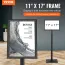 Metal Base Sign Stand for 11" x 17": VEVOR 11 x 17-inch pedestal sign holder is perfect for displaying various printed inserts, such as menus, signs, and posters. The sign frame allows for both vertical and horizontal views to accommodate your diverse display needs.Adjustable View: Experience customizable viewing angles with our floor sign stand! The knob-lock mechanism allows you to effortlessly adjust the viewing angle for easy readability from different perspectives. Whether it's a bird's-eye view or a straight-on look, our sign stand has you covered. No worries about any accidental slippage, thanks to the gear-lock structure.Stable Weighted Base Design: With an overall weight of 10.3 lbs / 4.7 kg and a reinforced 3.5mm thick base, the floor standing sign holder is designed to withstand unexpected bumps and even light winds. The wide and flat support rod adds an extra level of stability, ensuring your sign stays upright like a rock.PVC Protective Sheet and Premium Materials: We believe in delivering quality that lasts! The VEVOR sign holder poster stand is built with premium materials. The PVC protective sheet provides clear visibility and protection against harsh weather, sunlight, dust, and fingerprints. The aluminum alloy frame ensures durability and corrosion resistance.Easy Poster Replacement: The poster sign stand features a front-opening snap frame design, allowing for easy poster replacement without the need for tools, providing convenience, and saving time.