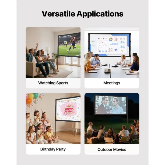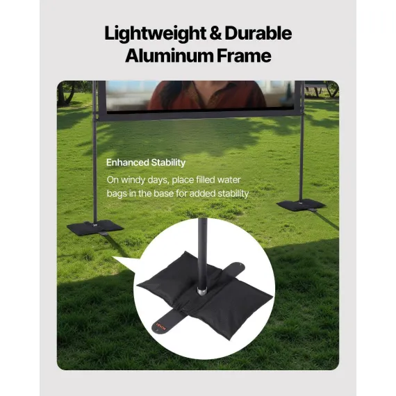 Foldable Projection Screen: Our projector screen is designed for outdoor cinematic experiences, offering an expansive viewing area. Its portable foldable structure enables space-saving storage and transport for instant viewing enjoyment anywhereWrinkle-Resistant: This 80-inch projection screen uses foldable, washable premium milk fiber material to ensure a wrinkle-free experience. It maintains cleanliness and delivers high-resolution images, supporting both front and rear projection. With a 16:9 aspect ratio and 160¡ã wide viewing angle, enjoy great movie nightsOutdoor-Optimized Design: Our portable movie screen features a sturdy stand with 68.5 to 39.0 inch height adjustment. Equipped with sandbags, ropes, and stakes, it remains securely anchored outdoors even in windy conditions¡ªideal for effortless enjoyment during backyard gatherings, camping trips, or travelQuick Assembly: The outdoor projector screen includes an easy-to-follow manual. With its durable all-metal stand, assembly requires only a few simple steps¡ªquick and effortless! The detachable crossbeam installs without toolLightweight & Portable: This outdoor projector screen¡¯s moderate size and portable design allow easy vehicle storage. Ideal for diverse indoor/outdoor activities including movie nights, travel, camping, and home theater use