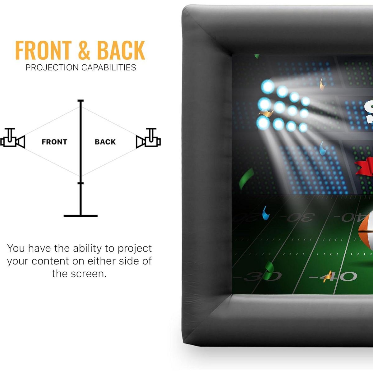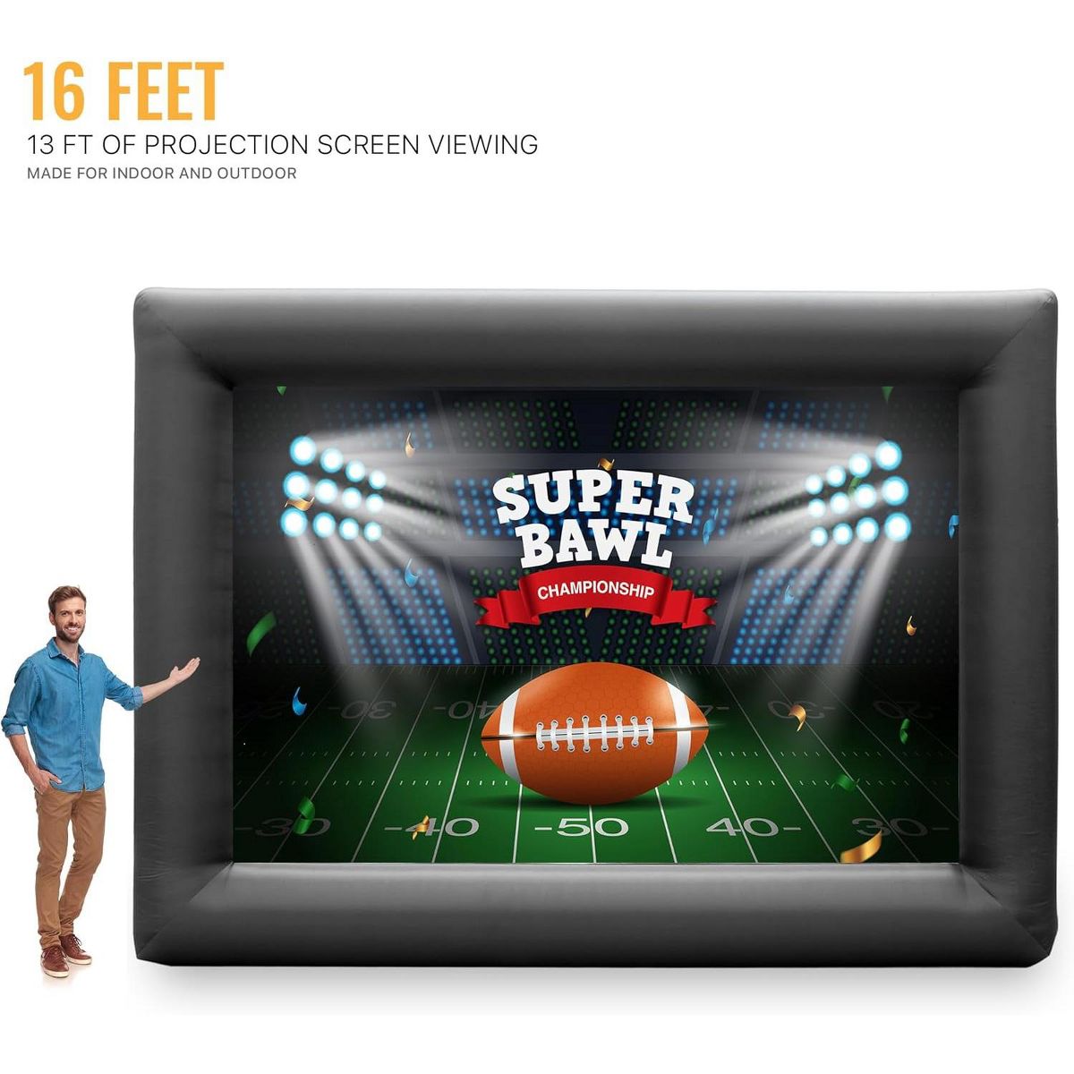 KHOMO GEAR 16 ft Outdoor Projector Screen with Built-in Blower - Supports Front and Rear Projection - Includes Tie-Downs and Storage Bag - Inflatable Projector Screen