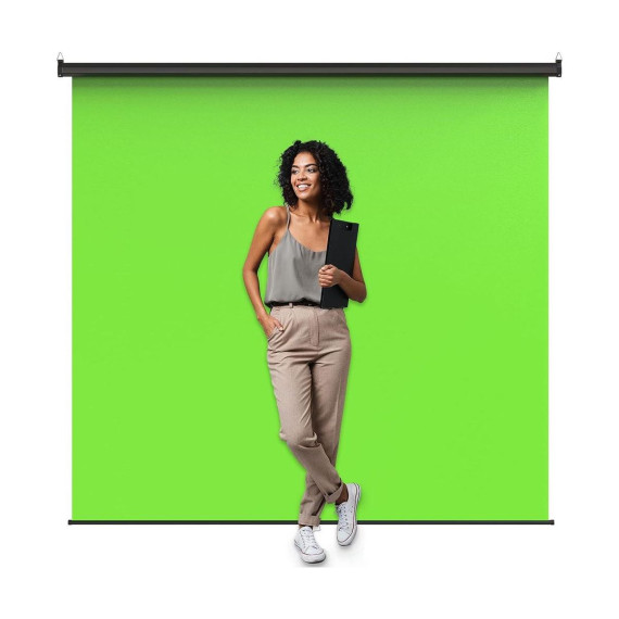 KHOMO GEAR 84"x84" Green Screen – XL Pull-Down Backdrop with Black Frame – Portable, Collapsible for Video & Streaming