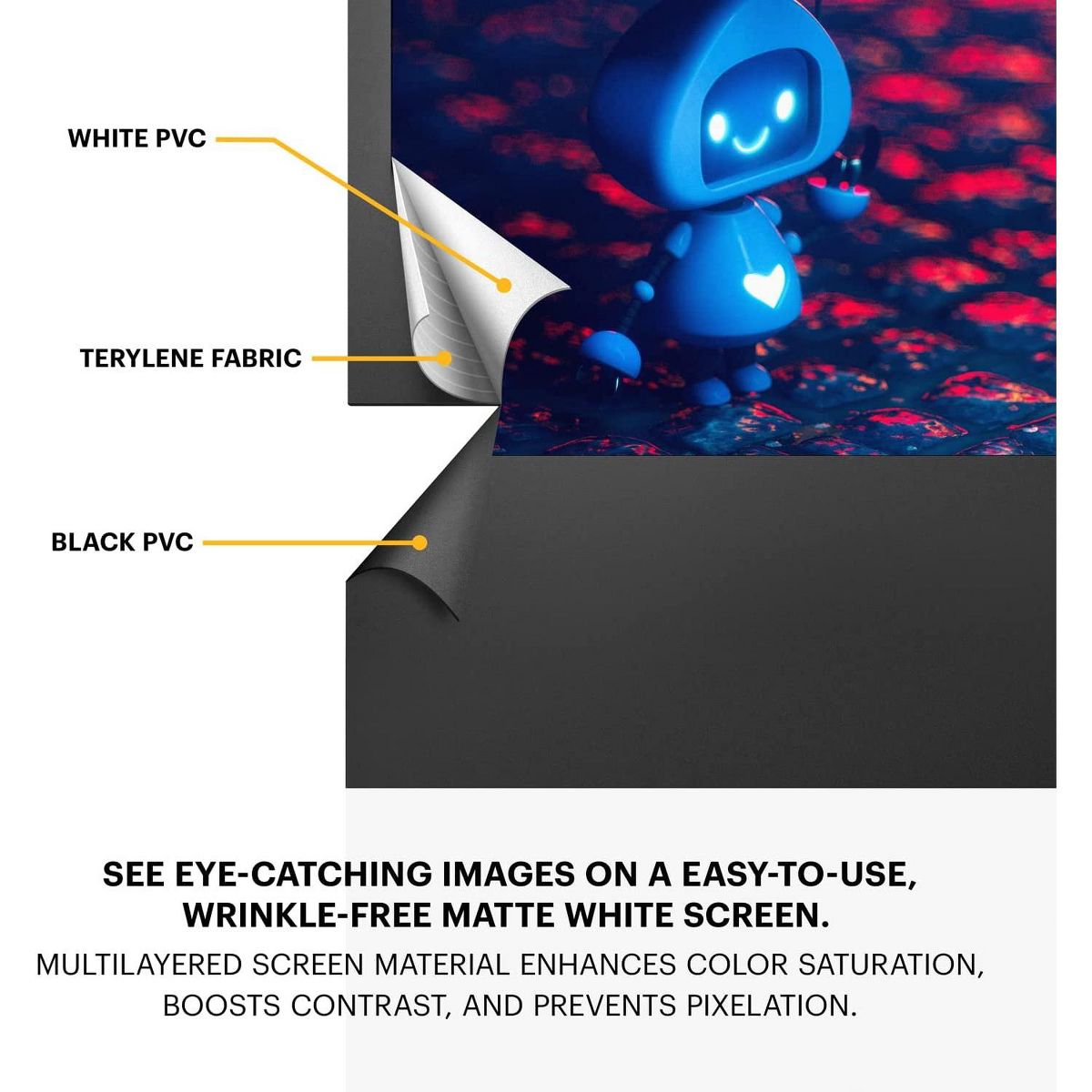 See clear, vibrant pictures on the Kodak Instant Movie Screen / 100” Pull Up Projector Screen. Watch all your favorite movies and shows in your backyard or meeting with this portable screen for projector. With the matte quality of this outdoor movie screen, see everything truly pop as you watch projections at home, at work, or in school. The lightweight design makes it easy to take this projector screen pull up anywhere and everywhere.